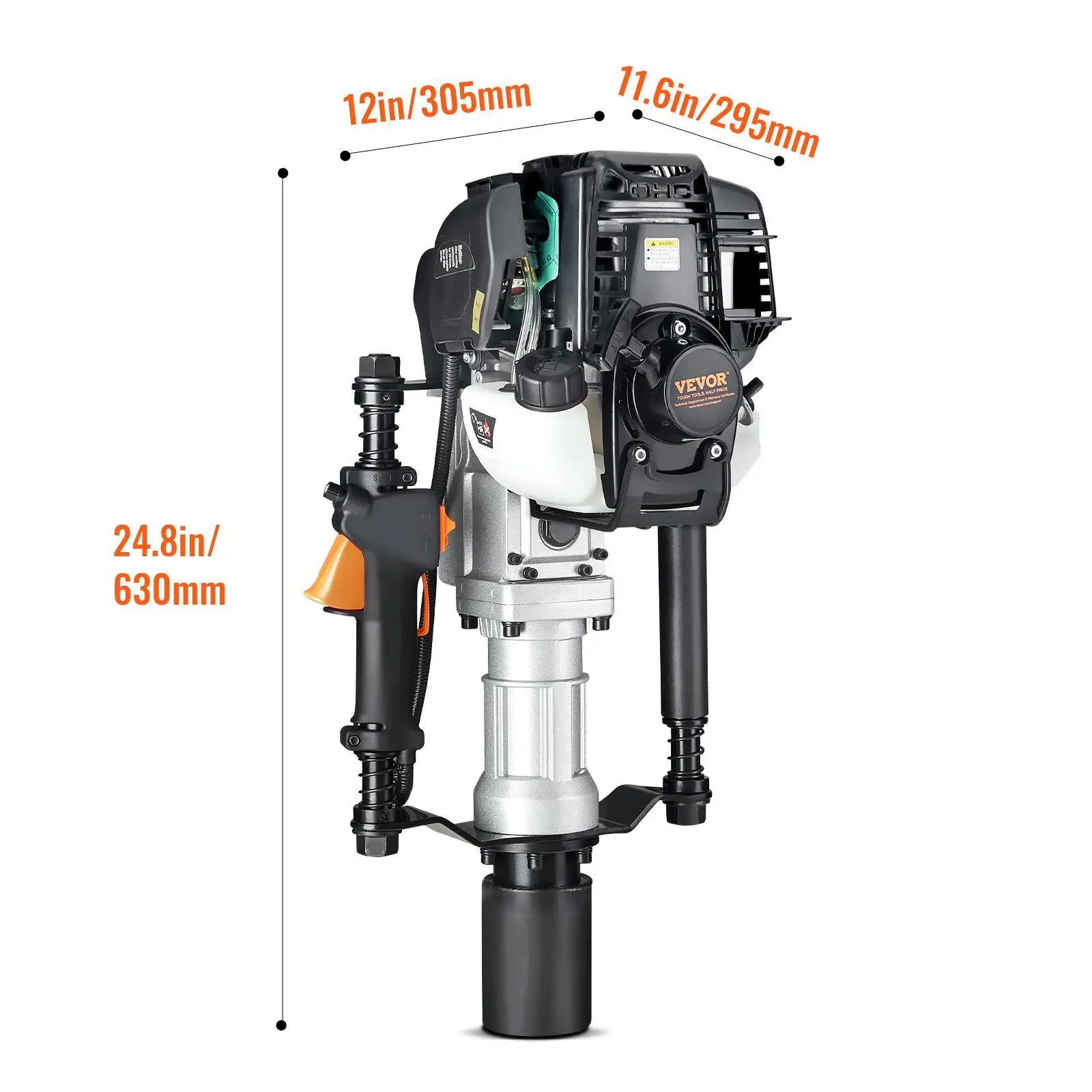 • User-Friendly Design: The pile driver features a non-slip handle for comfort, an easy start device for quick ignition with minimal pulling force, a shock-absorbing spring to reduce engine vibration. Oil supply hose: Before use, ensure that the oil supply hose is fully filled with oil.