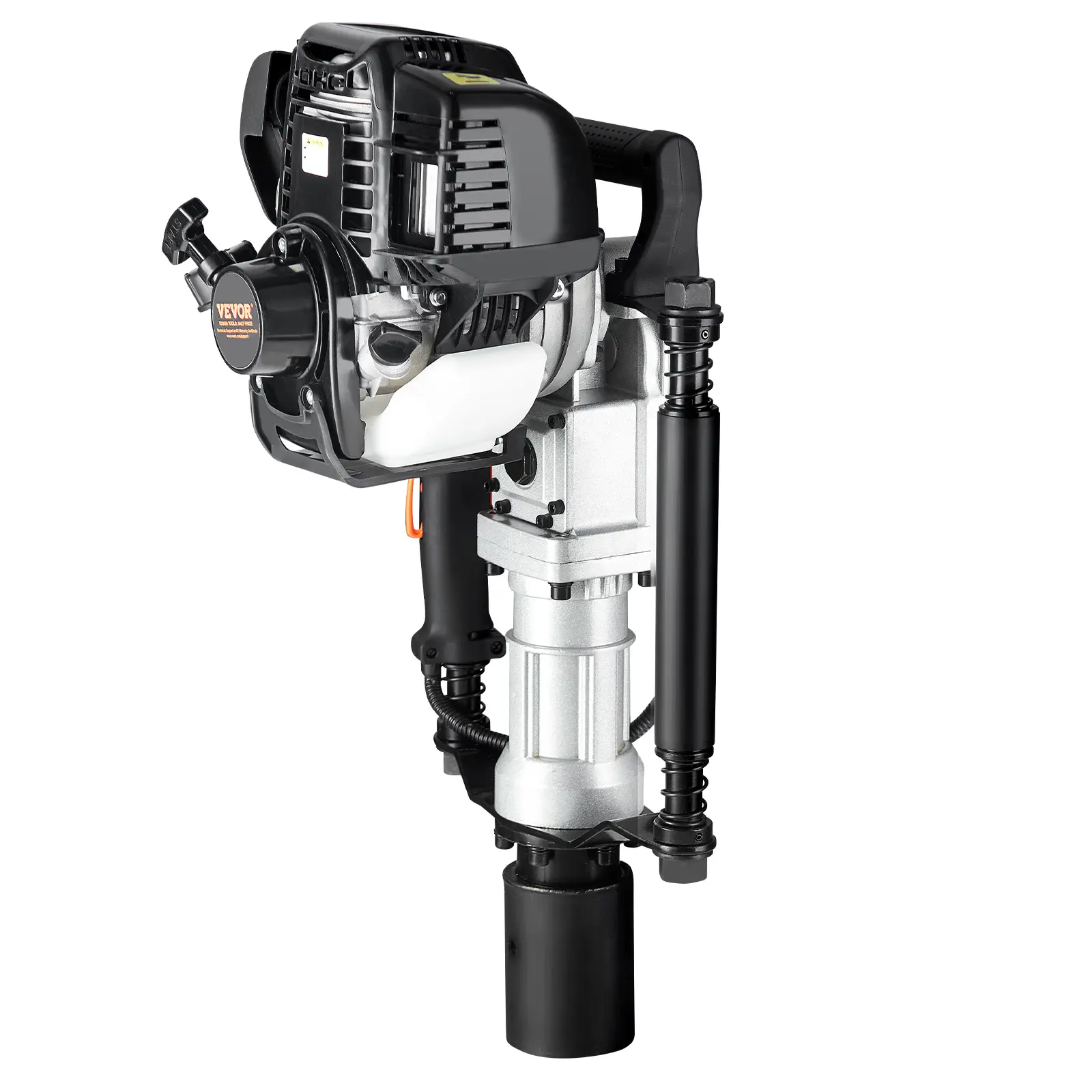 • User-Friendly Design: The pile driver features a non-slip handle for comfort, an easy start device for quick ignition with minimal pulling force, a shock-absorbing spring to reduce engine vibration. Oil supply hose: Before use, ensure that the oil supply hose is fully filled with oil.