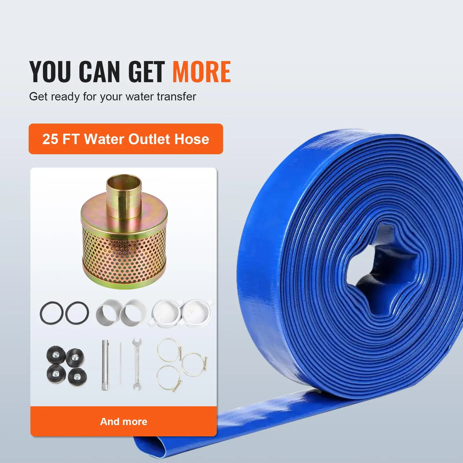 • Everything You Need: This gas engine water transfer pump comes with everything you need to get started - including a 25 ft outlet hose, inlet metal filter screen, spark plug sleeve, forcing rod, wrench pressure cap, pipe joints, sealing rings, shock pads, etc. You'll be up and running in no time!