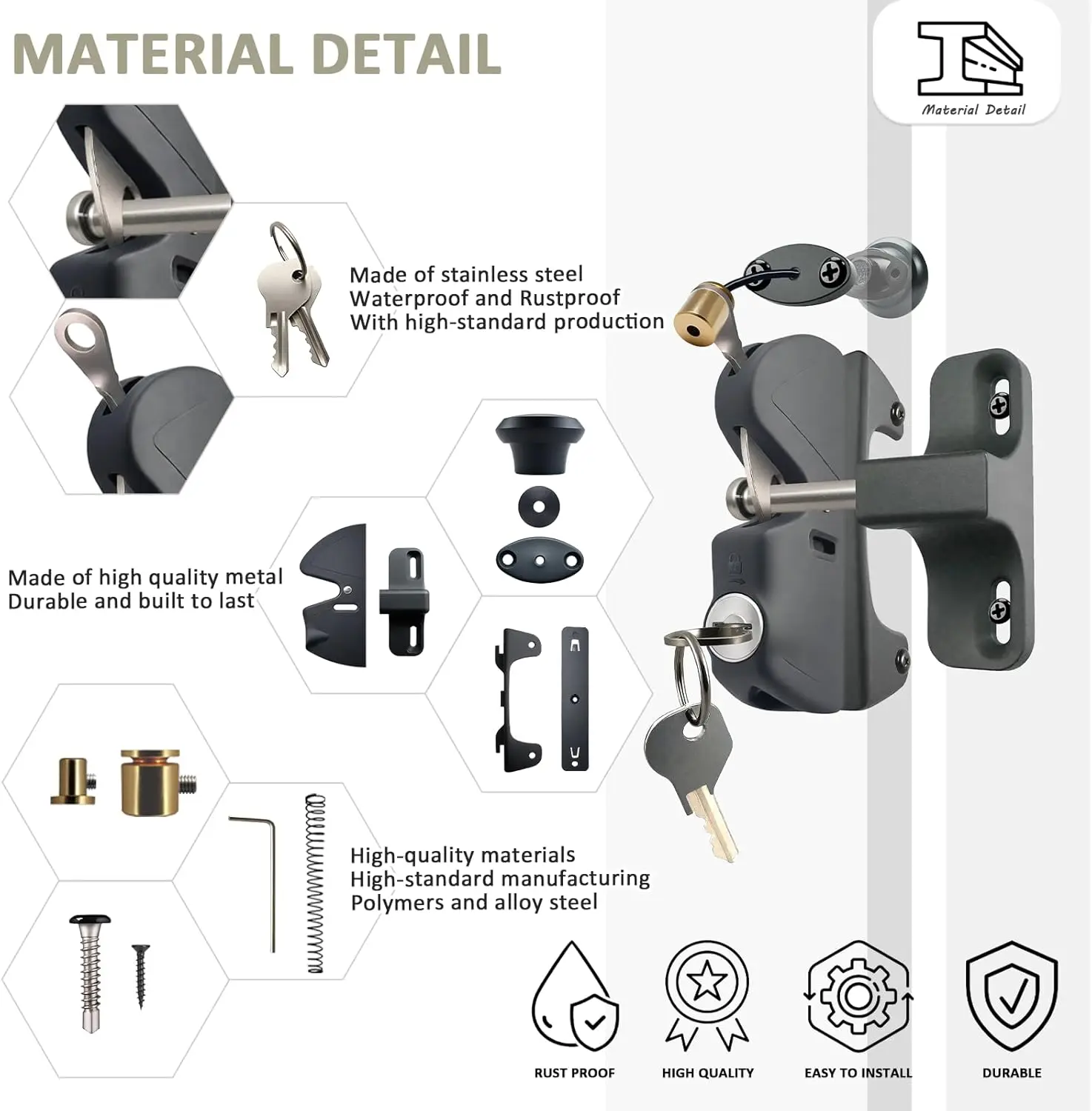 ·【Multifunctional and Secure】With its locking function, our latch keeps children and puppies safely enclosed within the fence. It's suitable for securing metal doors, wooden doors, vinyl doors, and can be used on RV deck doors, patio doors, pool gate, and more. Whether you need a hook latch, padlock latch, or a hook lock - style mechanism, our product combines the functions of various gate latches. The gate spring - loaded feature adds an extra layer of convenience. Invest in our high - quality latch for added security and peace of mind