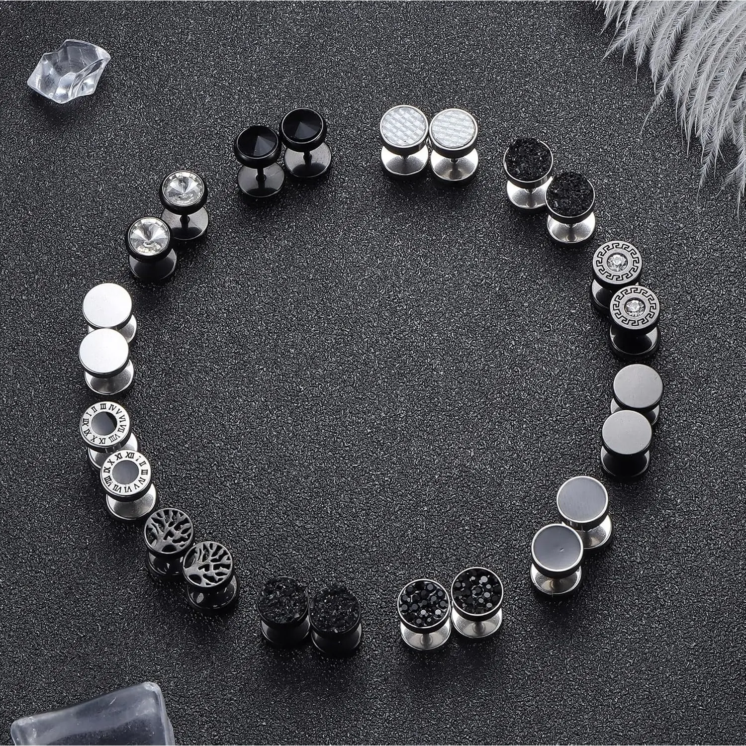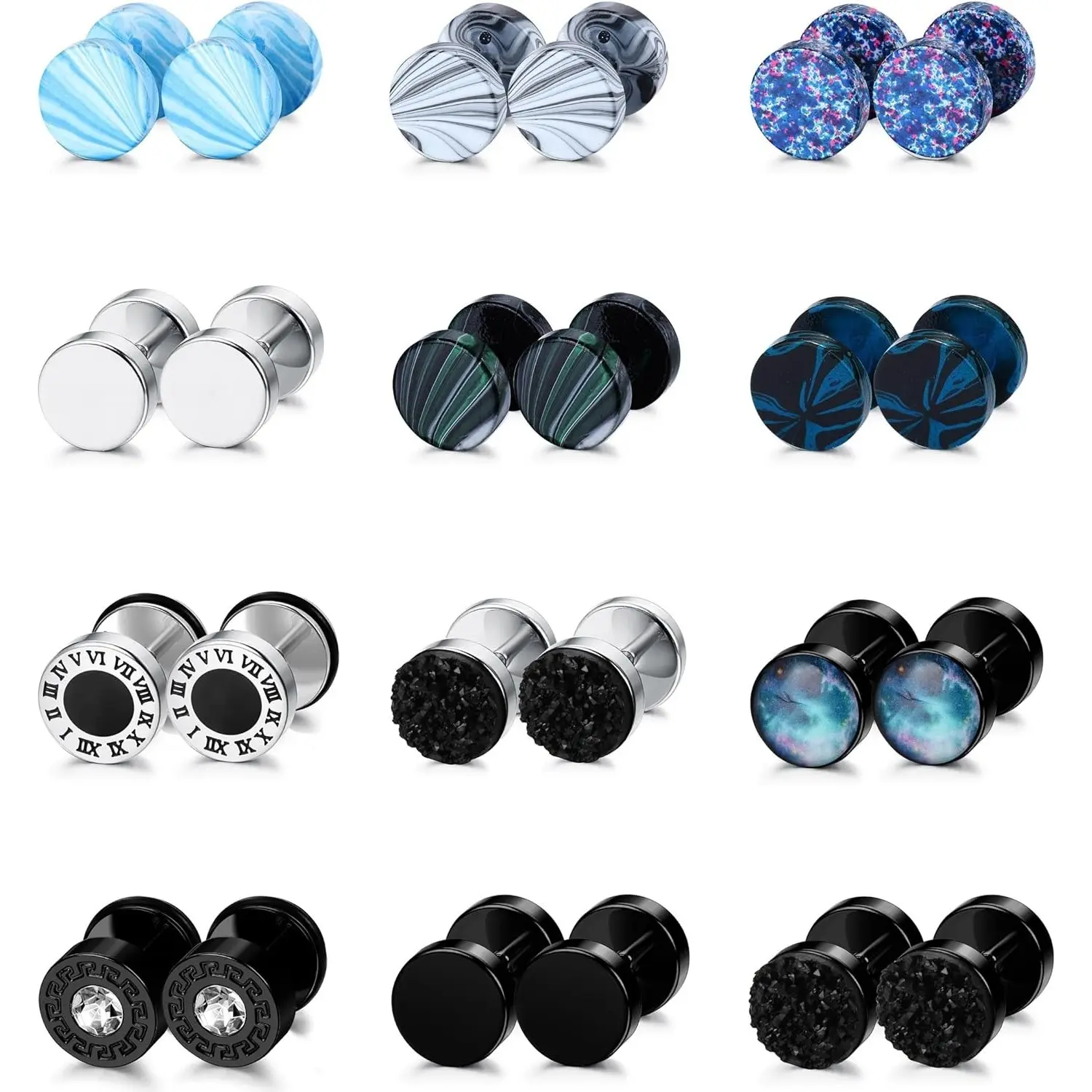 12 pairs of faux gauge earrings with different styles