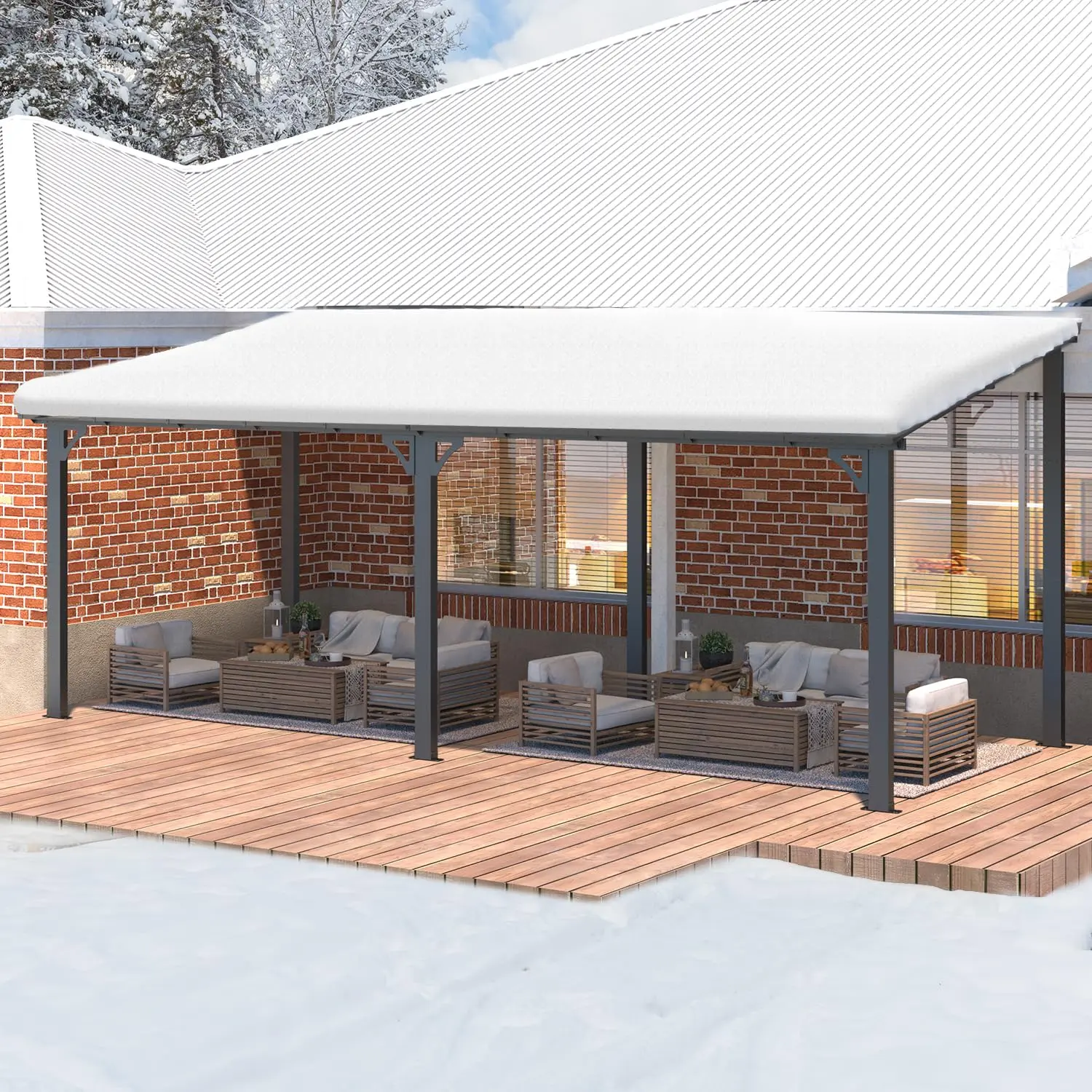 Our gazebo includes a detailed manual, step-by-step video tutorials, and expert technical support. Set up is simple, ensuring a hassle-free experience. 📚🎥 With a 7" snow capacity, it handles hail and blizzards. Rigorous tests show it withstands 6 lbs/sq.ft, equivalent to 7" of snow. Stay confident in any weather condition. ⛅❄️