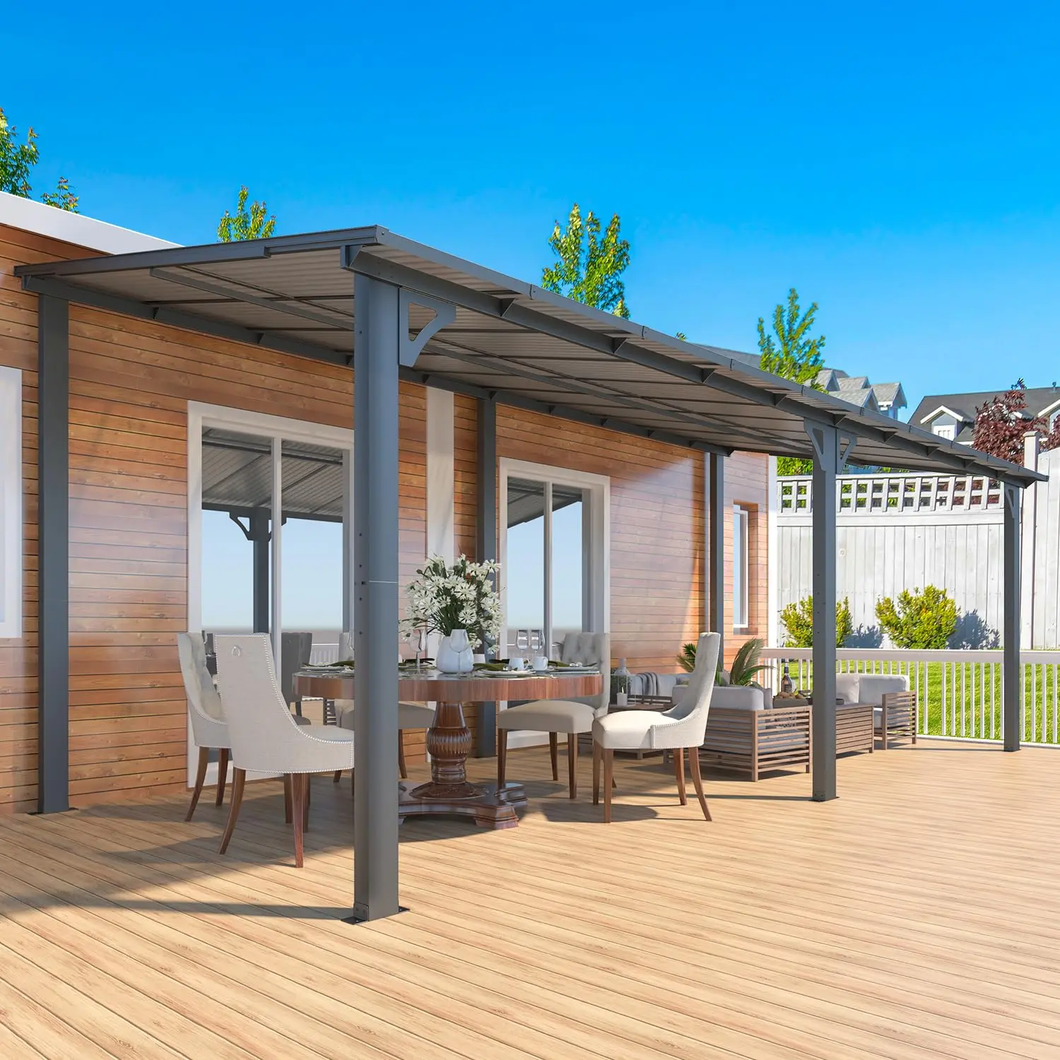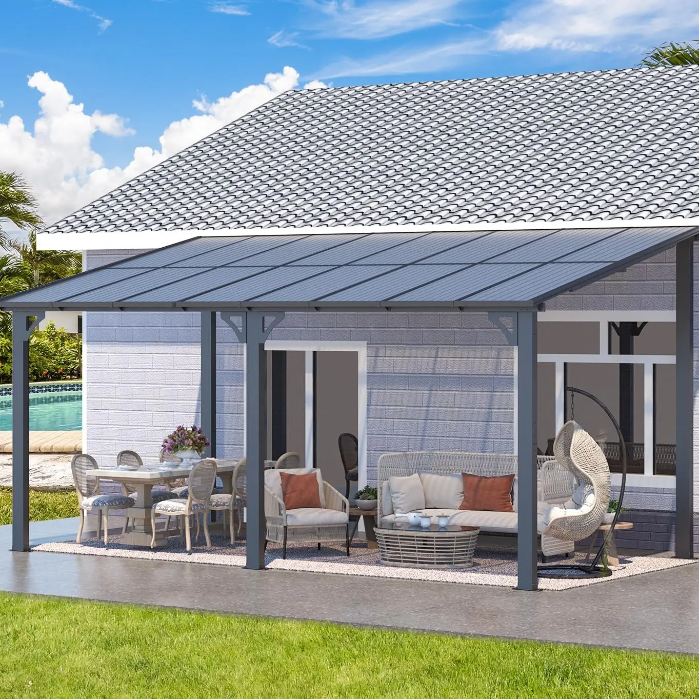 The 96 Sq.Ft. awning roof shields from UV rays and rain. Enjoy a protected space for your patio, decks, or backyard furniture. Stay comfortable and safe. 🌞🏠 We provide maintenance, replacements, and 24/7 support for installation and usage. Your satisfaction is our priority. Get professional help when needed. 📞🔧