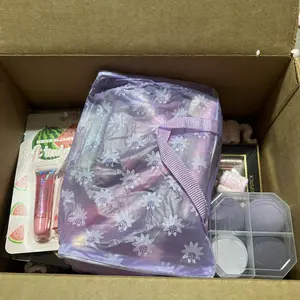 Box stained inside&outside. Most items inside had an oily residue & one item no cap. Not happy with all the duplicates, I understand 2 dup. 5 or 7 of the same thing no. looking to replace this box due to the mess. Items are nice but not the oily mess nor duplicates. Please reach out, Thanks