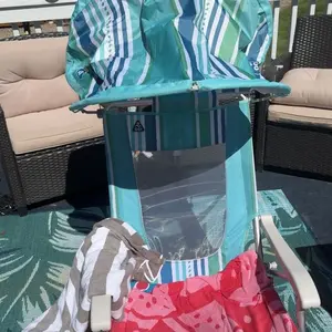 This chair is very nice! It is a little heavy but it really isn't an issue since it has backpack straps on it. I love the canopy! It keeps the sun off your face. It can be folded down if you dont want to use it. The snack tray is an added bonus. I highly recommend