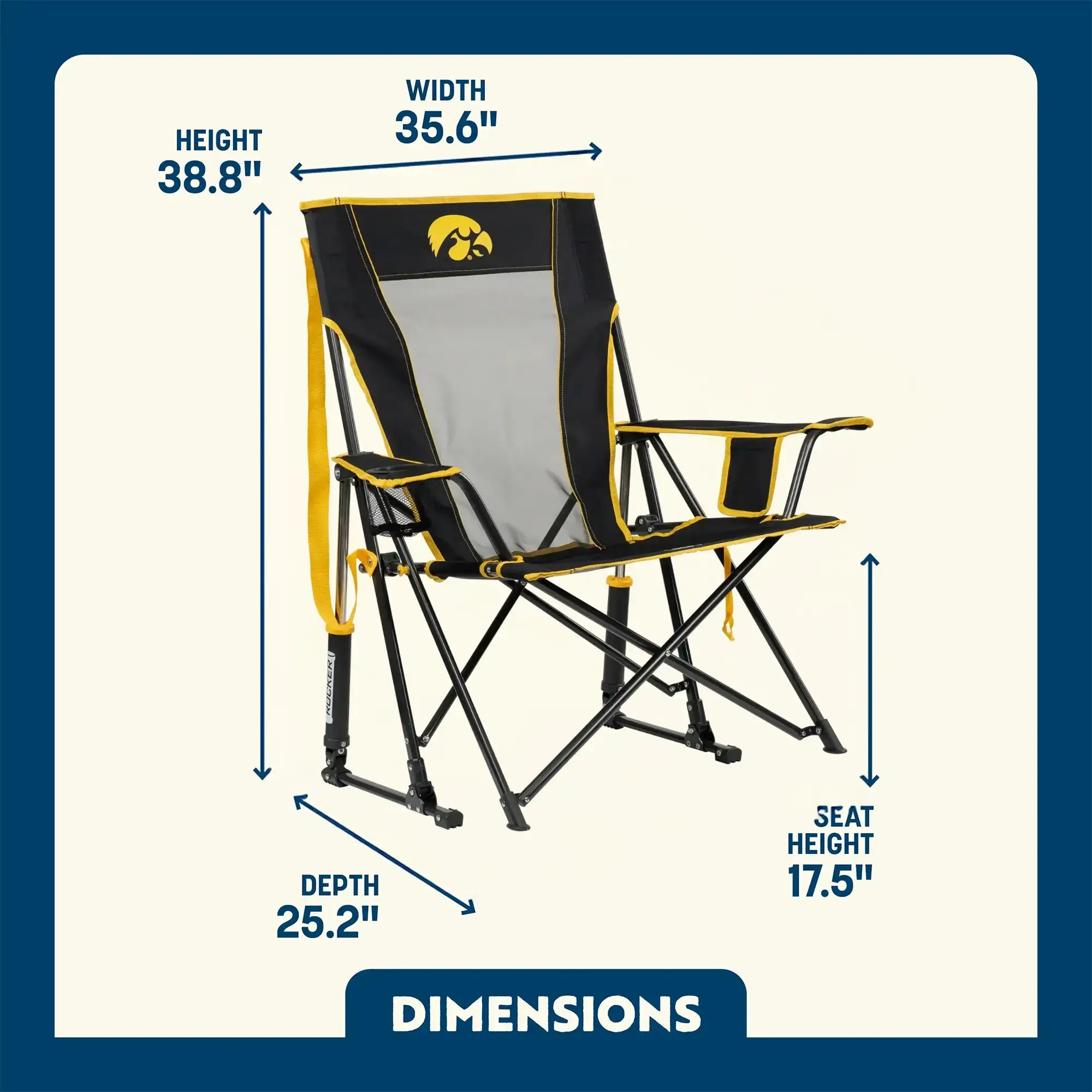 ✨ The GCI Outdoor Comfort Pro Rocker™ Iowa Hawkeyes is officially licensed. It features a taller backrest and a relaxed seating angle. Perfect for cheering from the sidelines, this chair is designed for your favorite college teams.