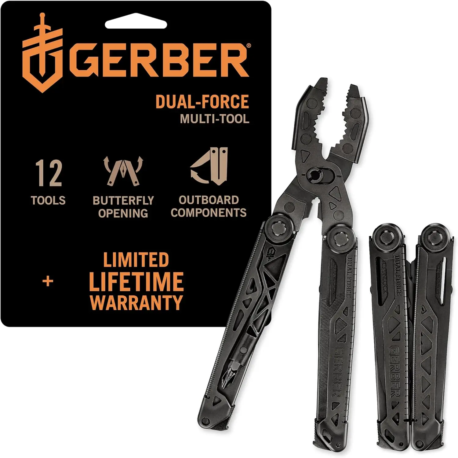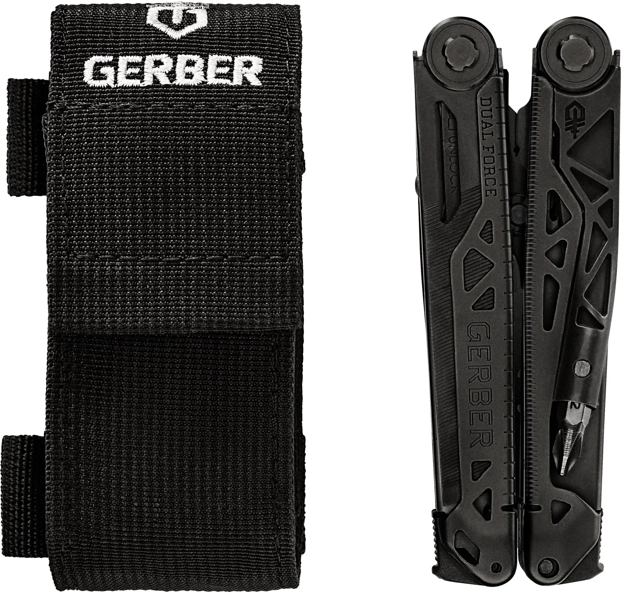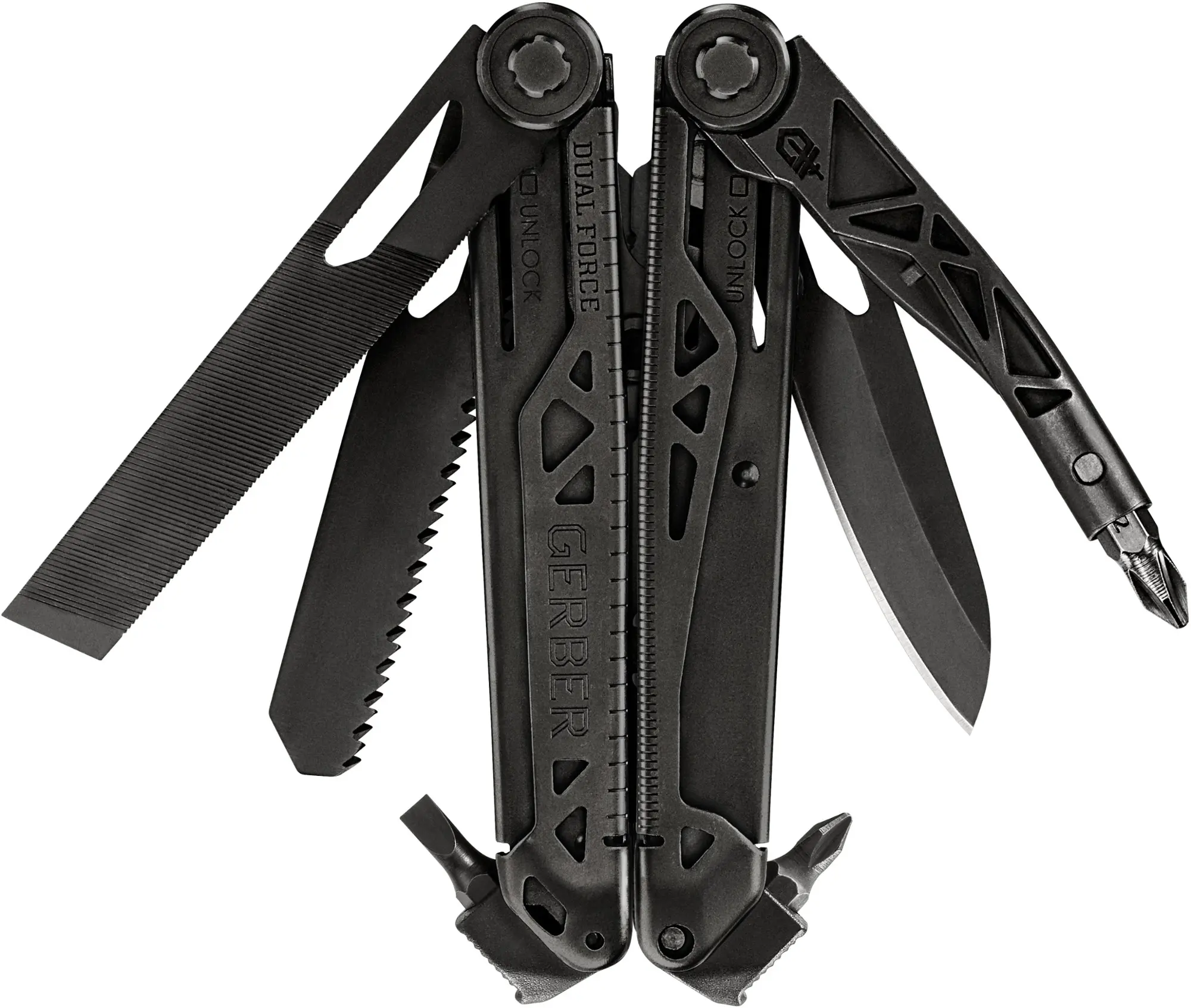 Gerber Gear Dual-Force Multitool - Heavy Duty, Center Axis Driver, Blunt Nose Pliers with Saw, Wire Cutters, Bit Storage, and More - Black