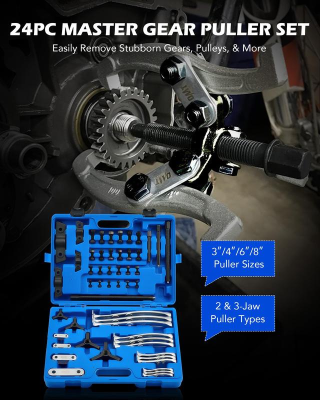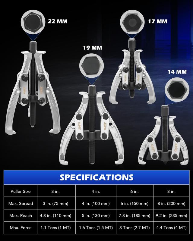 ·Gear Pulling Made Easy: Conquer your gear pulling tasks with Orion Motor Tech's 24-piece gear puller set, including four puller sizes with maximum spreads of 3", 4", 6", and 8" and reaches of 4.3", 5", 7.3", and 9.2" to ensure you're always prepared for a variety of applications.