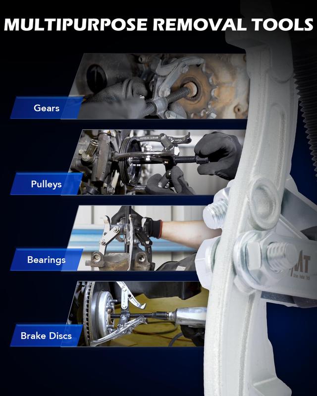 This 3 jaw puller set by Orion Motor Tech fits your wrench or ratchet to work as a gear puller, bearing puller, crank pulley puller, flywheel puller and more, letting you easily handle worn or broken parts.