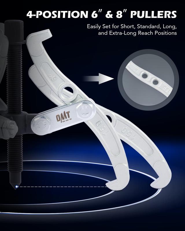 Each pulley removal tool can be reversed to pull parts from either the inside or outside, with the 6" and 8" gear puller providing 4 configurations for a sure grip thanks to their dual fixing holes.