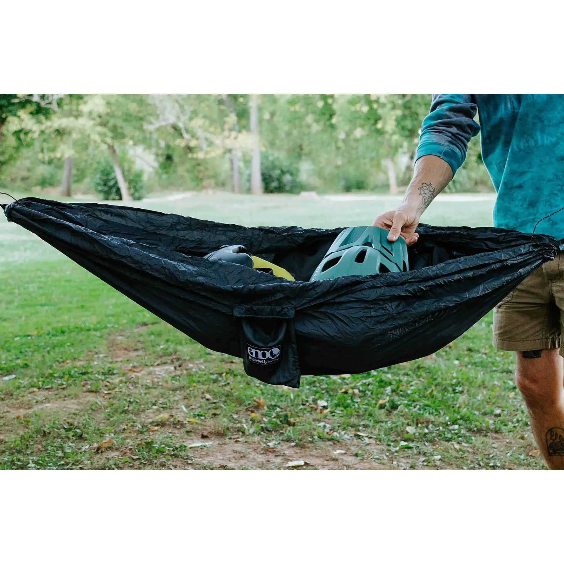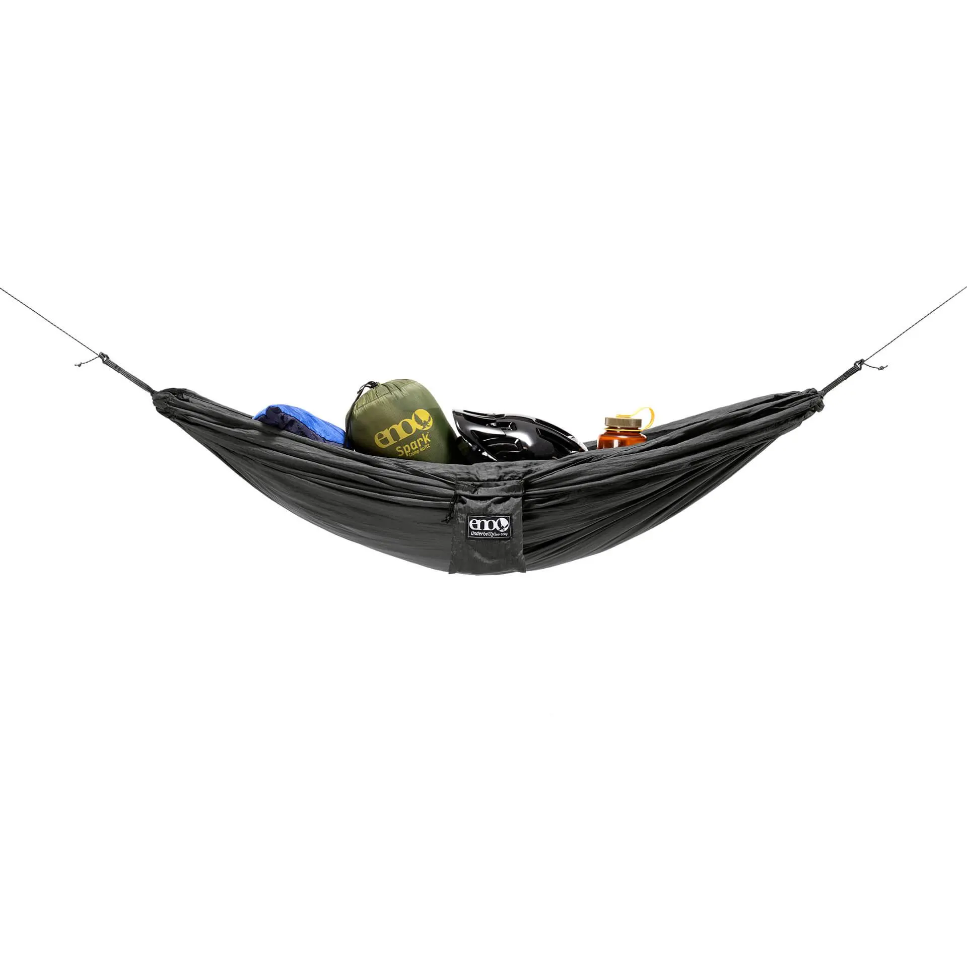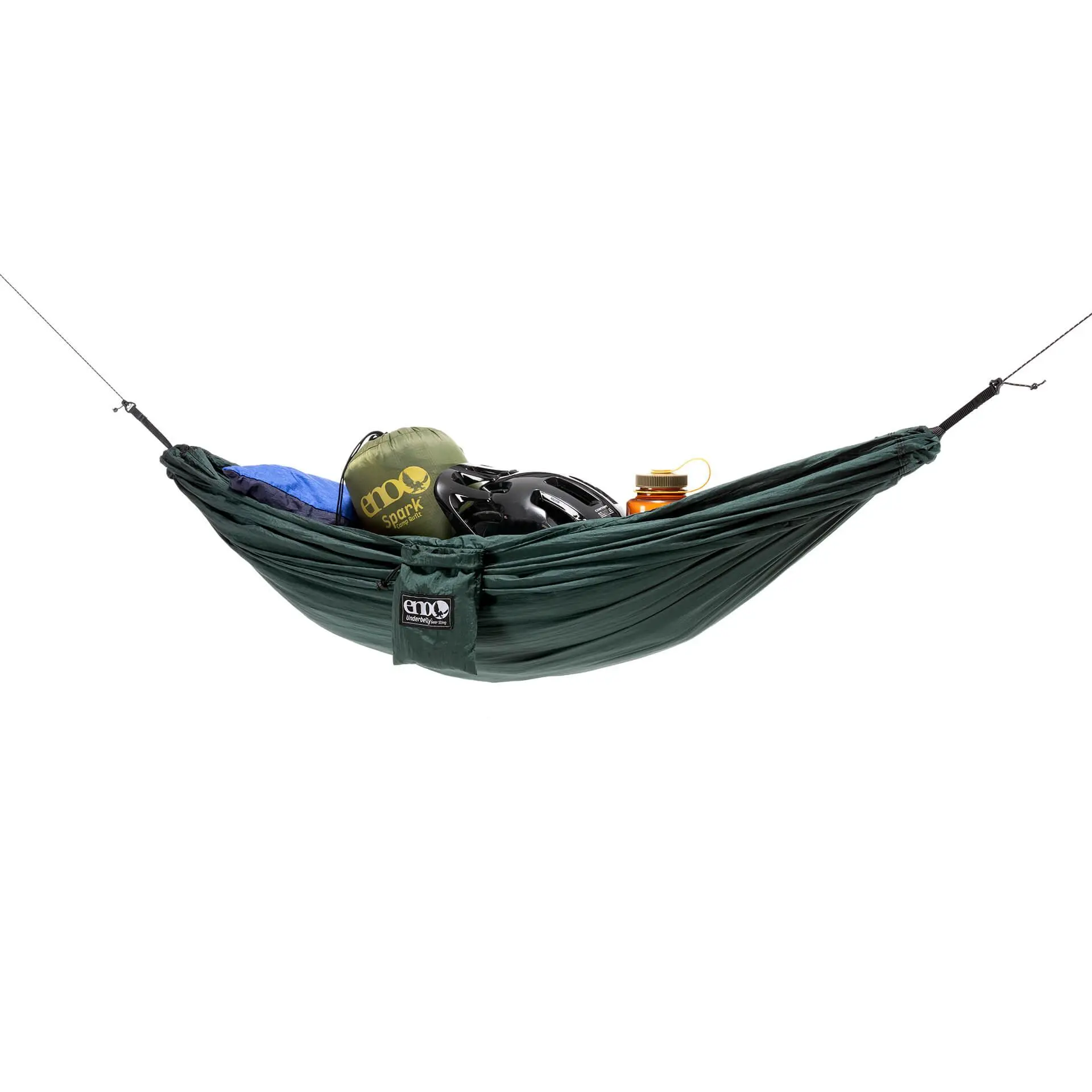 Has been Amazing! I have two full hammock setups from ENO! They truly have my loyalty! The setup that I use when I am not packing light, includes the ENO house fly, and I must say that the underbelly gear sling fits perfectly right along side it. I bought the gear sling in the middle of winter, and have used it three times. All of these times, it had succeeded my expectations! I definitely pile more weight on it than suggested, and it has held up without fail. Also, the gear sling seems to stay very dry, no matter how dewy the morning find me. Finally, the gear sling is ONLY 7 OUNCES! I will take this everywhere.