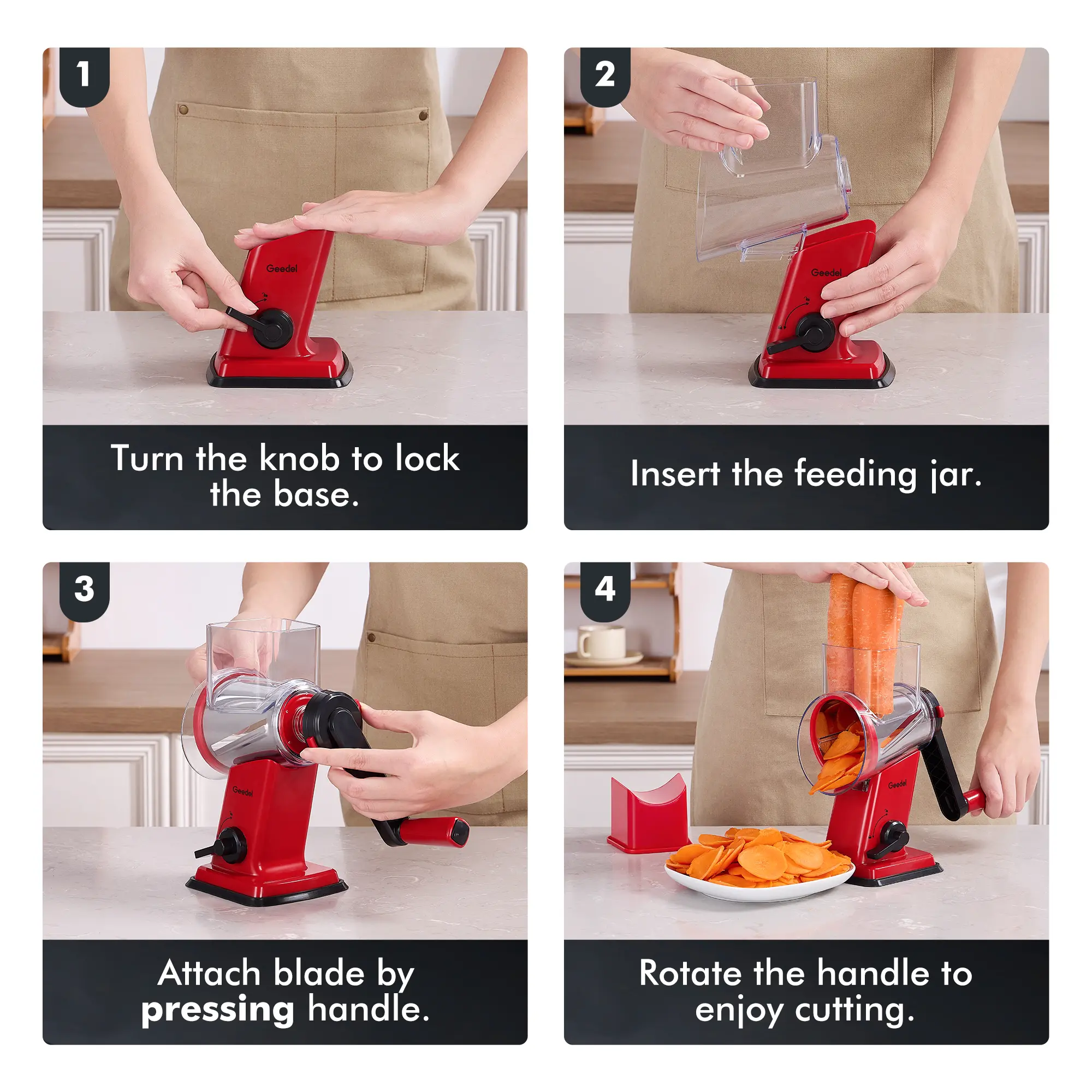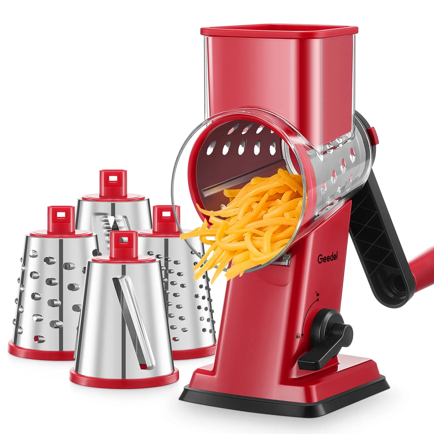 Leave that other brand in the shop! Bought it and sent back, it wouldn't stay locked on the counter and the 2 blades are not great. THIS Geedel grater is GREAT!! Stays locked super well and the blades are sharp and the entire barrel. DO NOT MISS OUT ON THIS!! I'm buying a couple more as gifts.