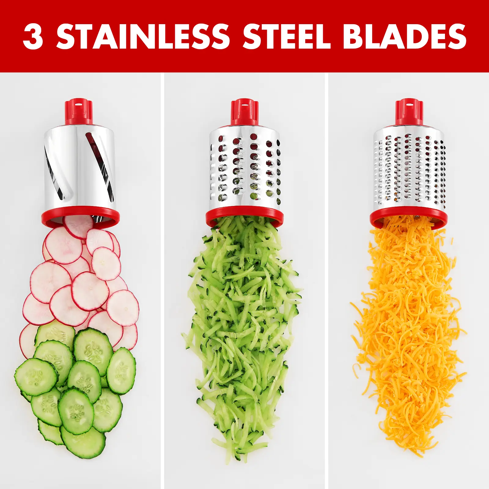 Great product, easy to clean. Cheese is easy to slice and shred (do not use a lot of pressure when feeding, feed gently) my husband loves the sliced cheese as it’s nice and thin and he can take it in a baggy or add to his sandwich for work and it’s not so thick cut as when you do by hand.