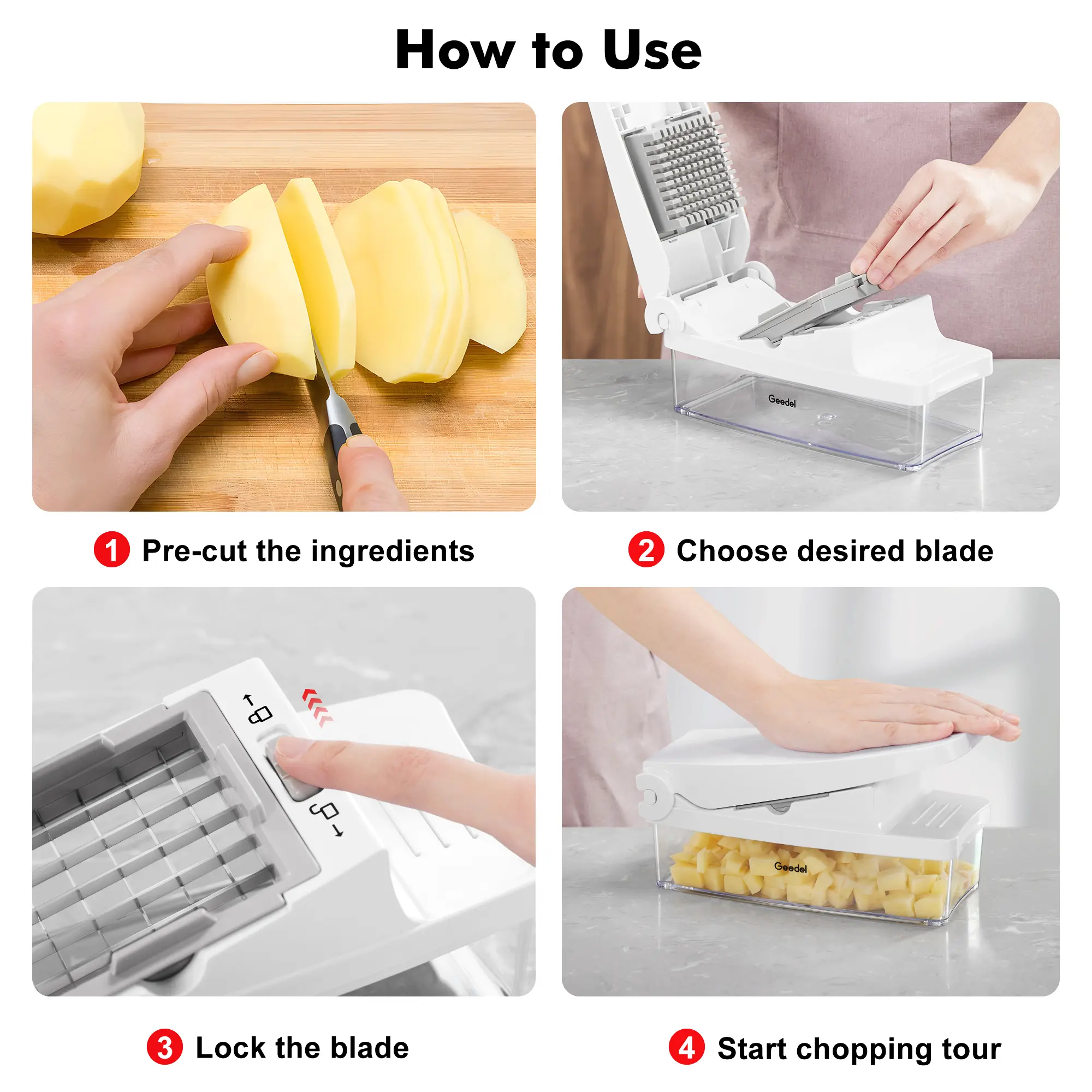 Vegetable chopper is very good. I like very much it’s easy to used. It’s have large container .