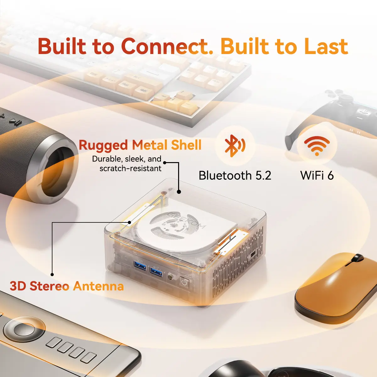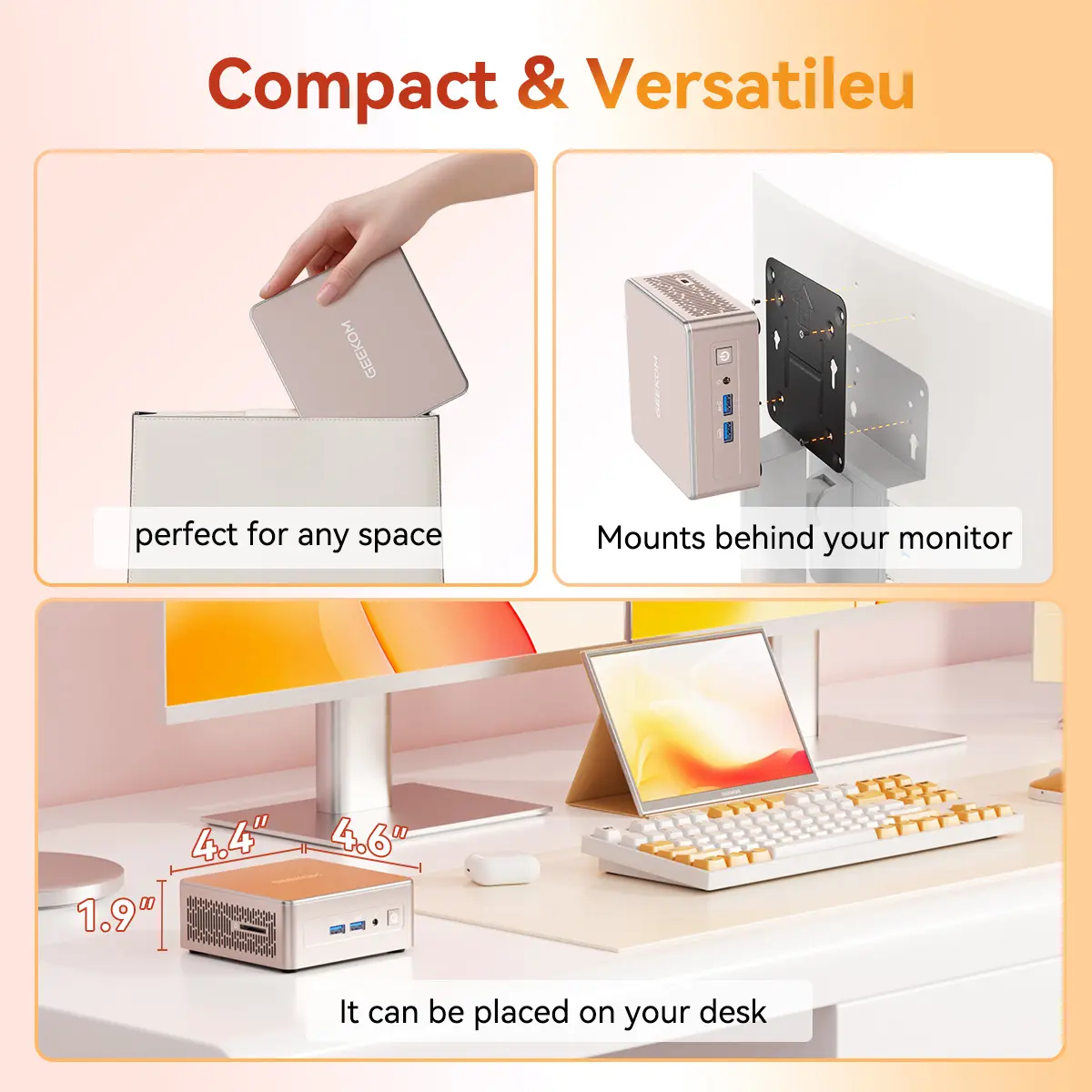 [4-Screen Display/8K Output] This mini desktop computer supports up to 4x 4K displays via 2 HDMI and 2 USB 3.2 Gen 2 Type-C ports, and delivers stunning 8K visuals through the Type-C interface