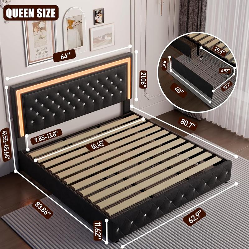 Customizable RGB LED Lighting: Built-in RGB LED lights on the headboard and footboard allow you to adjust colors and lighting modes for reading, relaxing, gaming, or creating a cozy bedroom atmosphere. Easily controlled via remote or mobile app for a personalized experience.