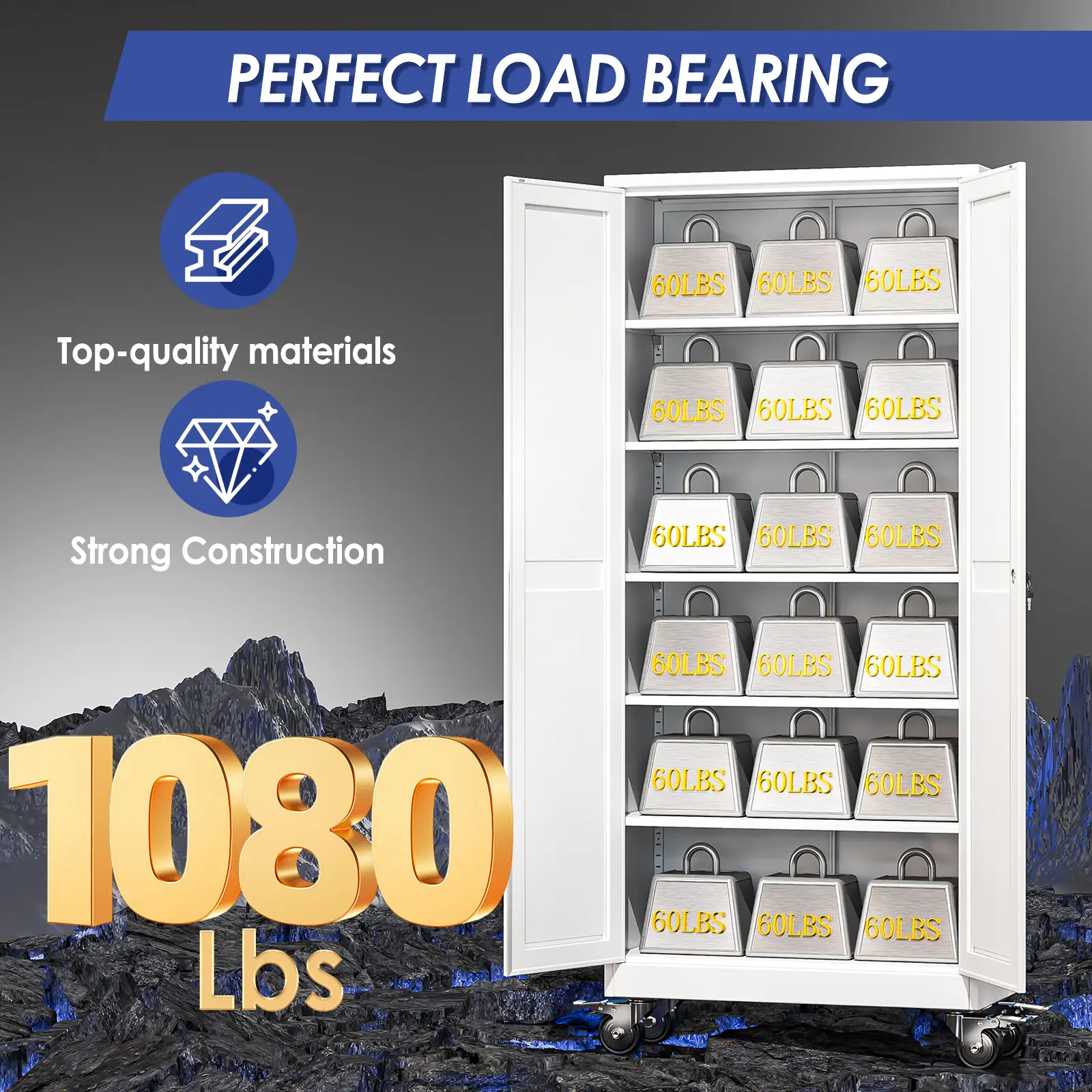 ·High-Strength Alloy Steel Build for All-Around Durability – Made of premium high-strength alloy steel, this metal cabinet (a top choice for metal garage storage cabinets) delivers unbeatable wear resistance, water resistance, corrosion resistance, and moisture resistance.It’s tough enough to handle heavy tools, outdoor gear, or household items, keeping your belongings safe from damage in garages, workshops, or even outdoor spaces.