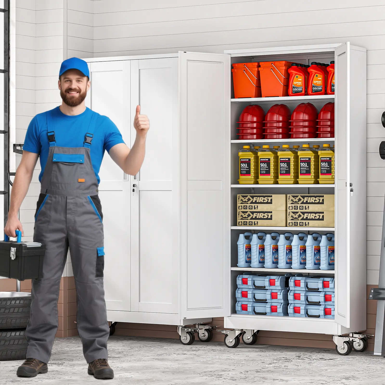 ·Versatile Use Across Garages, Homes, and More – Ideal for garage storage, this metal garage cabinet also shines as an outdoor storage cabinet, tool cabinet, or home storage solution.Use it in the garage to store tools, in the shop for supplies, in the house for seasonal items, or in the studio for craft materials – it adapts to all your storage needs.