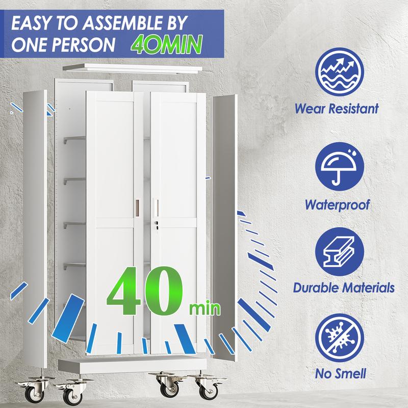 ·Tool-Free Easy Assembly & Stable Structure – This garage cabinet (a reliable metal storage cabinet) requires no complex tools for assembly; follow the clear instructions, and you’ll have it set up in minutes. The sturdy alloy steel frame ensures it stays stable even when fully loaded, while the sleek design complements any garage, home, or shop decor.