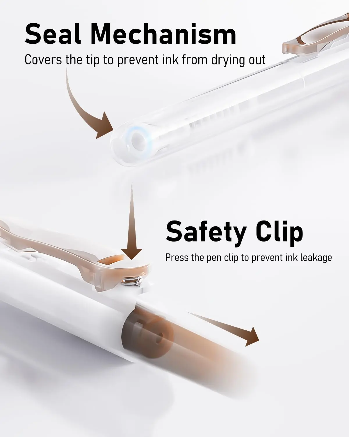 Ā·ļø [Portable Pen Clip & Comfortable Rubber Grip] Each retractable gel pens comes with a different style of clip to easily fasten it to a notebook or pocket, easy to carry and prevent loss.These gel pens set with soft rubber grip, it easy to hold and reduces hand fatigue and improves writing control, especially during extended writing sessions.