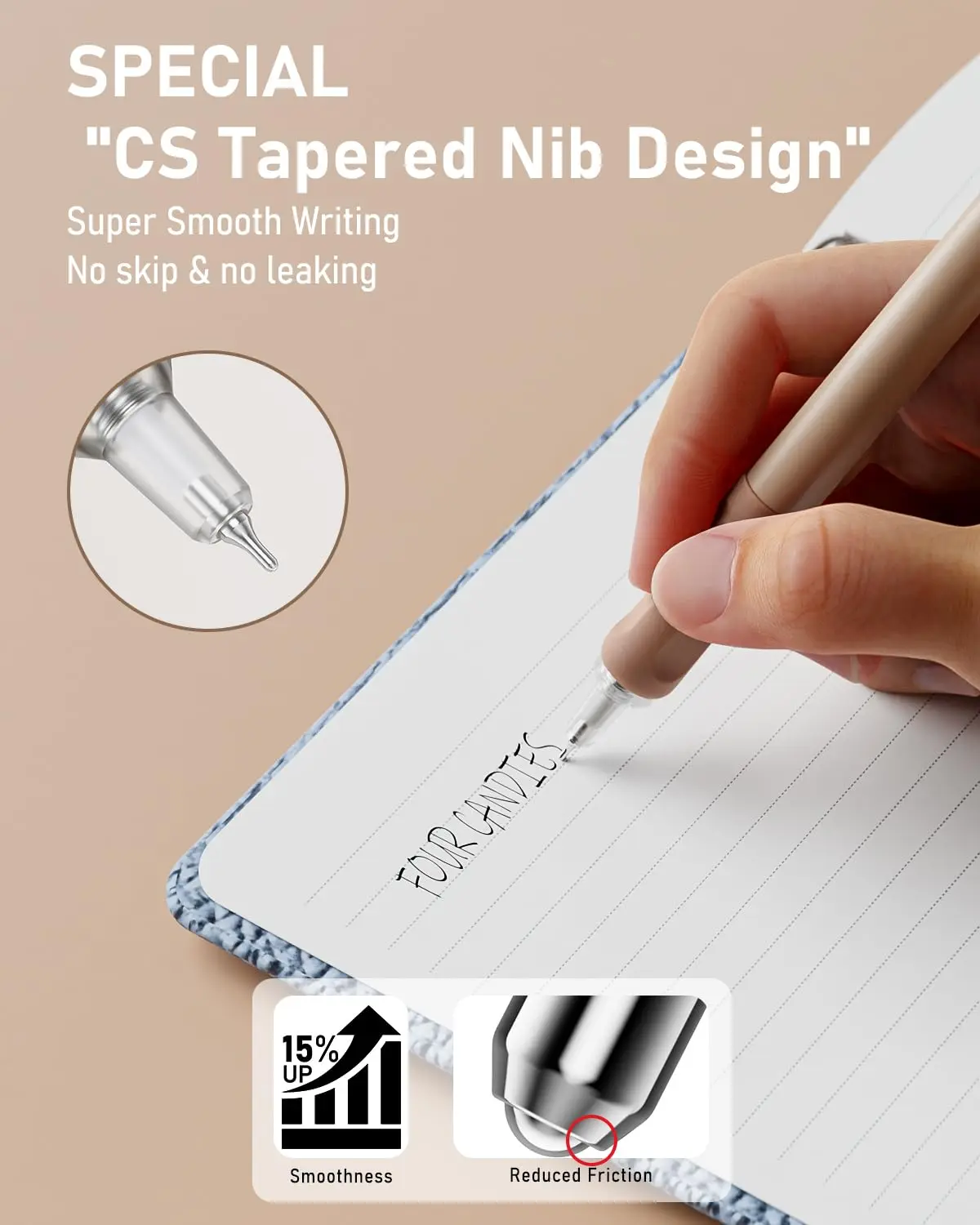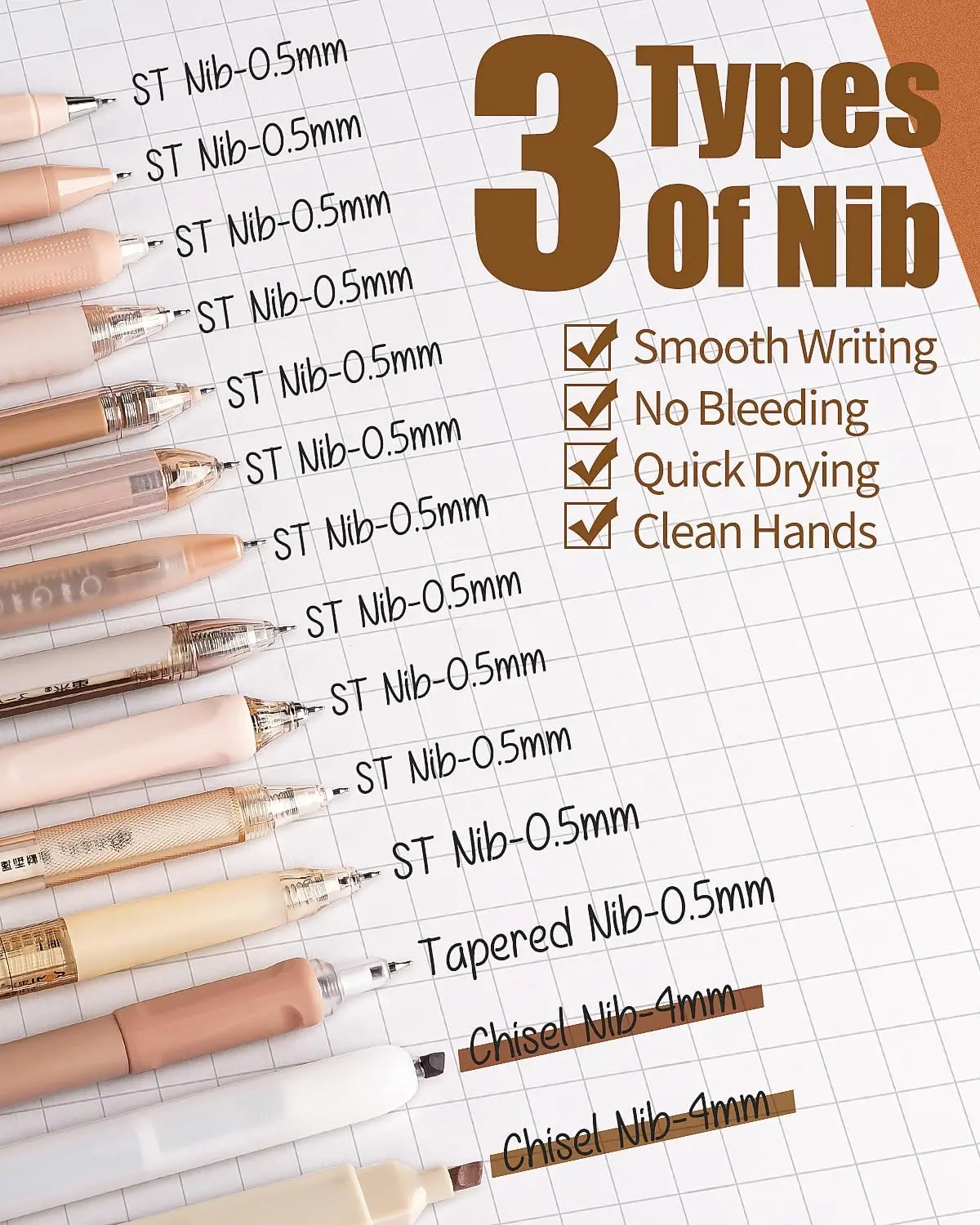 Ā·ļø[Aesthetic Pens with Various Nibs] The Cute gel pen set provides different nibs: ST nib, bullet nib, CS tapered nib, 4mm wide nib for highlighter, fine spring structure built into the nib, which makes ink output stable and writing easier and smooth. Our 0.5 mm black gel pens with feature fine tips, allowing for precise and detailed writing.They are particularly useful for tasks that require neatness and accuracy, such as drawing diagrams, taking notes, or writing in small spaces.