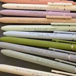 Amazing! Soft feel and incredibly smooth writing. I love the Bible verses on all of the pens. The soft muted colors are also beautiful.