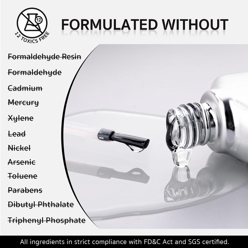 TOXICS FREE: Lower odor compared to traditional nail polish. All ingredients in strict compliance with FD&C Act and SGS certified.