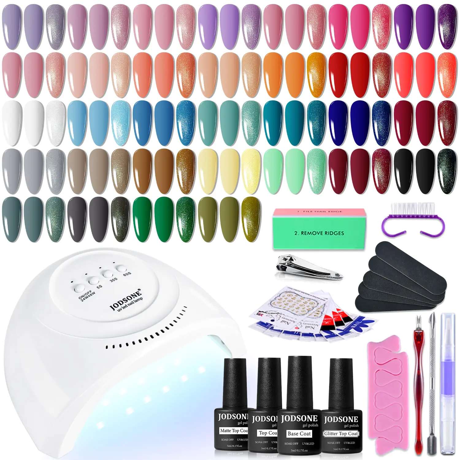 ·Complete Manicure Kit: This all - in - one set includes 32 bottles of gel nail polish in a diverse range of colors, along with a single bottle each of base coat, matte top coat, and a gloss & glitter top coat. Additionally, it comes with an intelligent nail lamp and all the essential manicure tools you'll require for your nail art endeavors. Gel Nail Polish