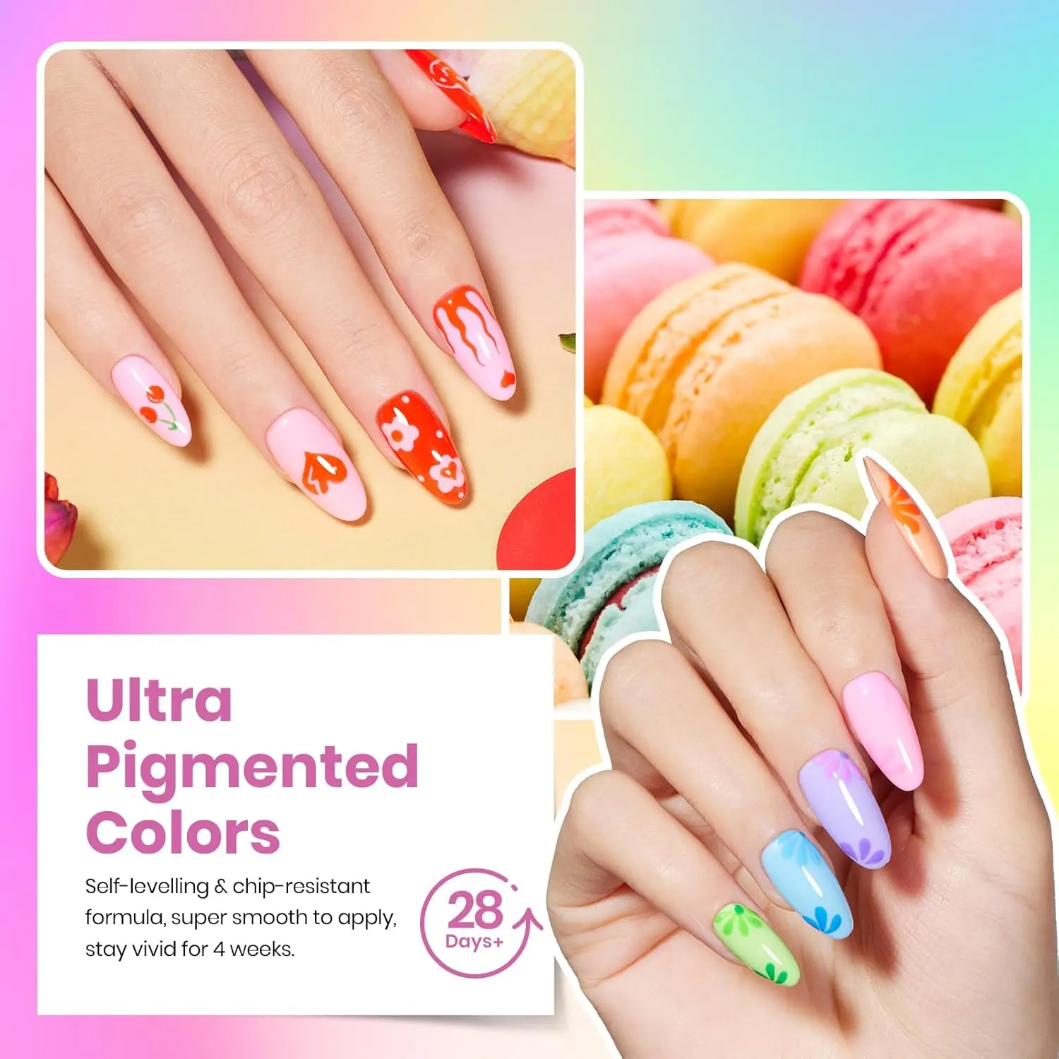 Elevate your nail game with a stunning selection of 36 trendy colors, perfect for warm seasons! From pastel pinks to fresh greens and bright corals, this gel nail polish set includes every shade you need to create endless nail art styles.