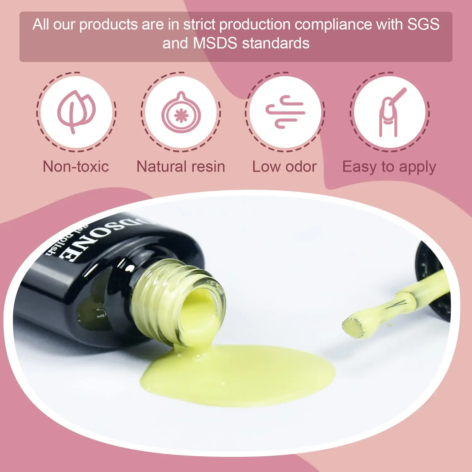 Product came damaged. Nail polish inside was ruptured/leaking onto all the other bottles.