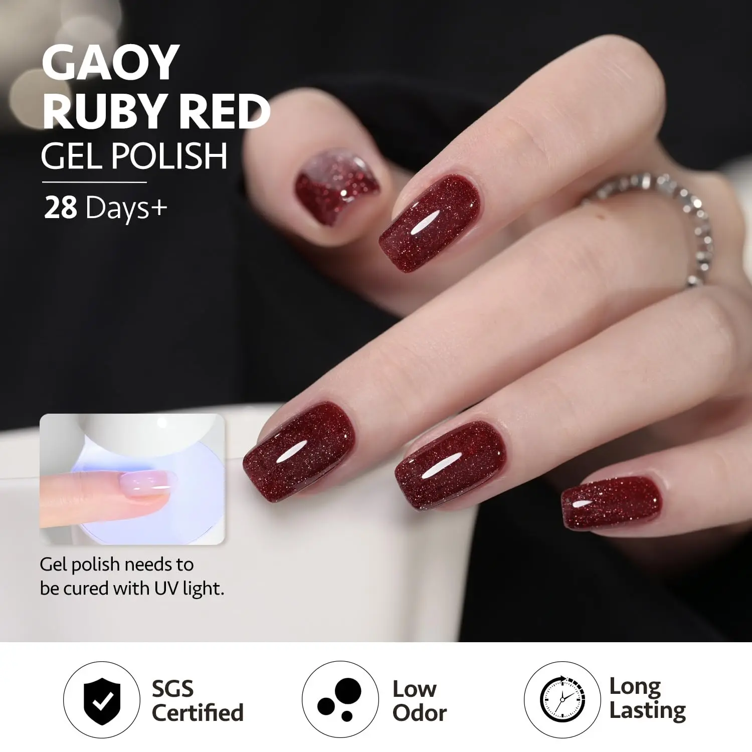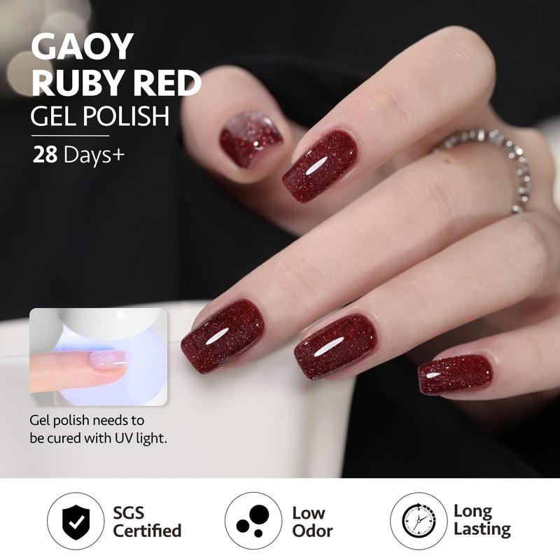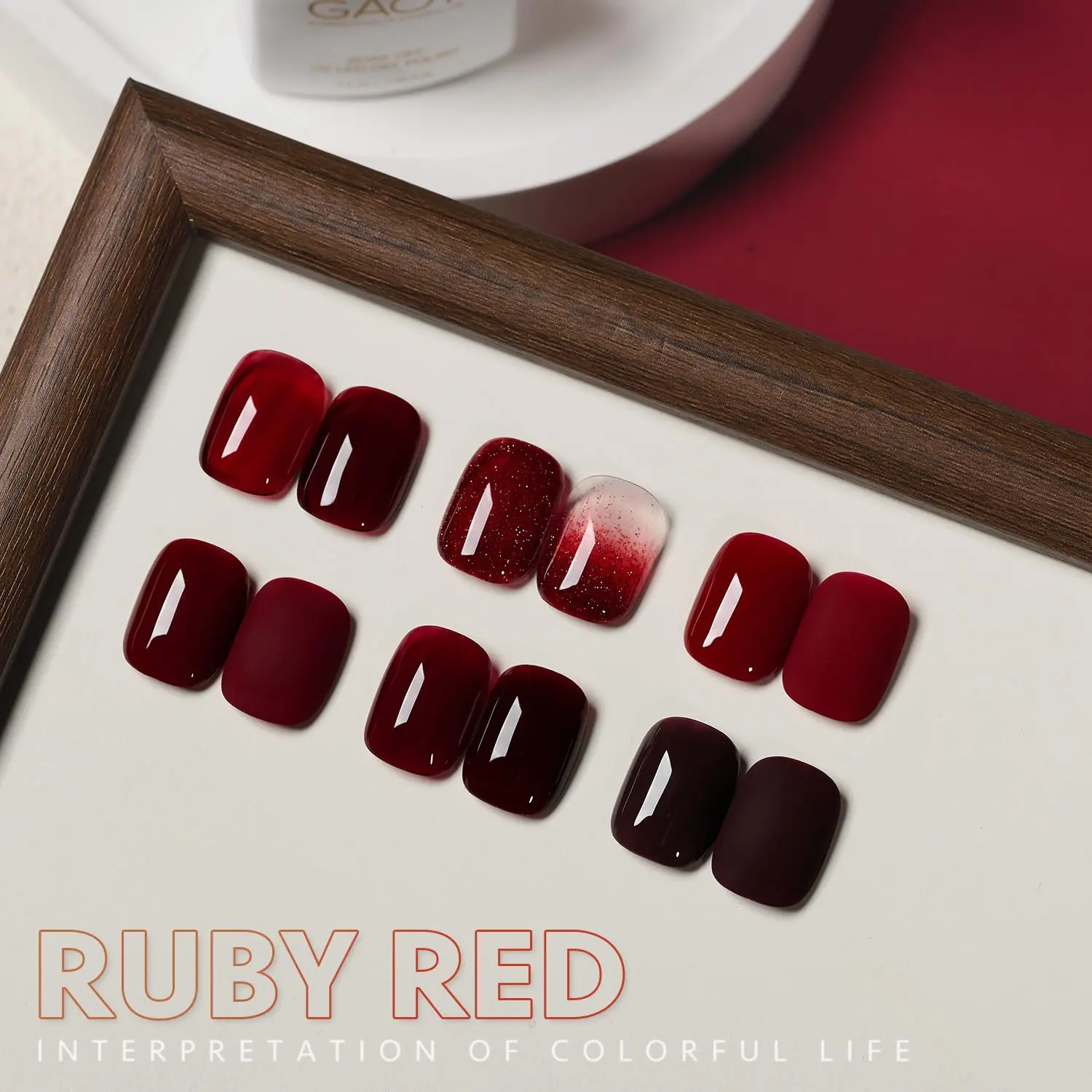 4. GAOY Red Collection Gel Nail Polish Set, 6 Colors Burgundy Cherry Dark Red Jelly Glitter Soak Off UV Light Cure Gel Polish Kit for Salon and Nail Art DIY at Home