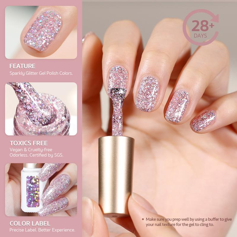Beautiful glitter gel nail polish. I love these colors and goes on great.