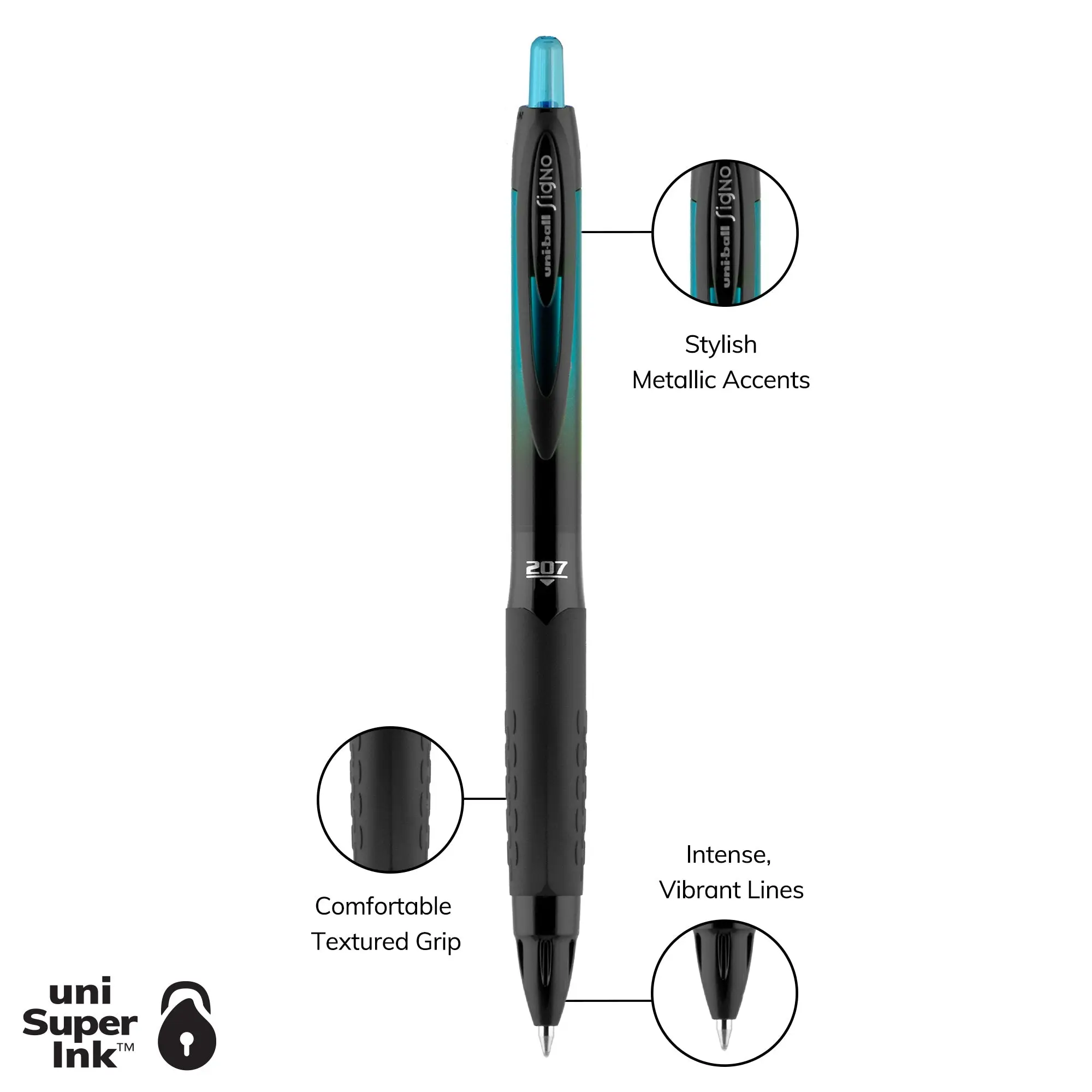 Create with depth and dimension thanks to the uni-ball 207 BLX Infusion Retractable Gel Pen's unique ink. Every exceptionally smooth stroke has a hint of color for a rich, dramatic effect.