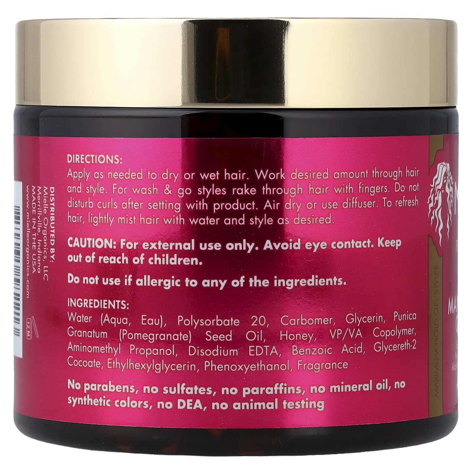 Mielle Maximum Hold Gel Styler, For Thick, Curly Hair, Pomegranate & Honey Blend, 16 oz (454 g)