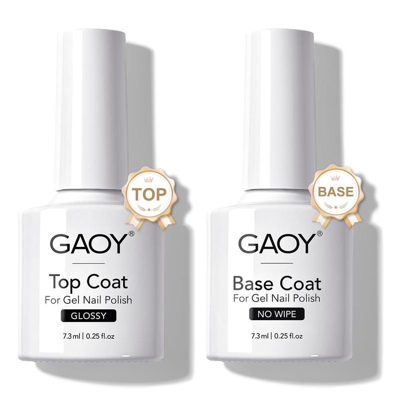 GAOY Gel Top Coat and Base Coat Set, 2 Pcs 7.3ml Glassy Top Coat and No Wipe Foundation Combination for UV Light Cure Gel Nail Polish Manicure