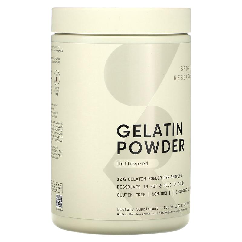 5. Sports Research Gelatin Powder, Unflavored, 1 lb (454 g)