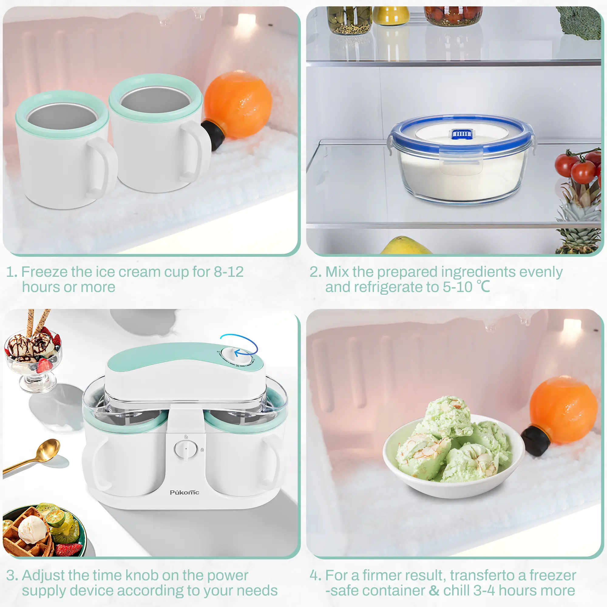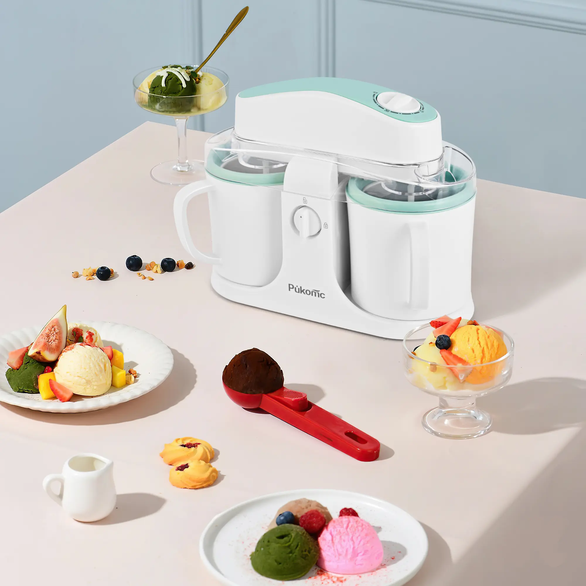 Make your frozen treats effortless and enjoyable with the Pukomc 2-in-1 Gelato & Sorbet Maker!