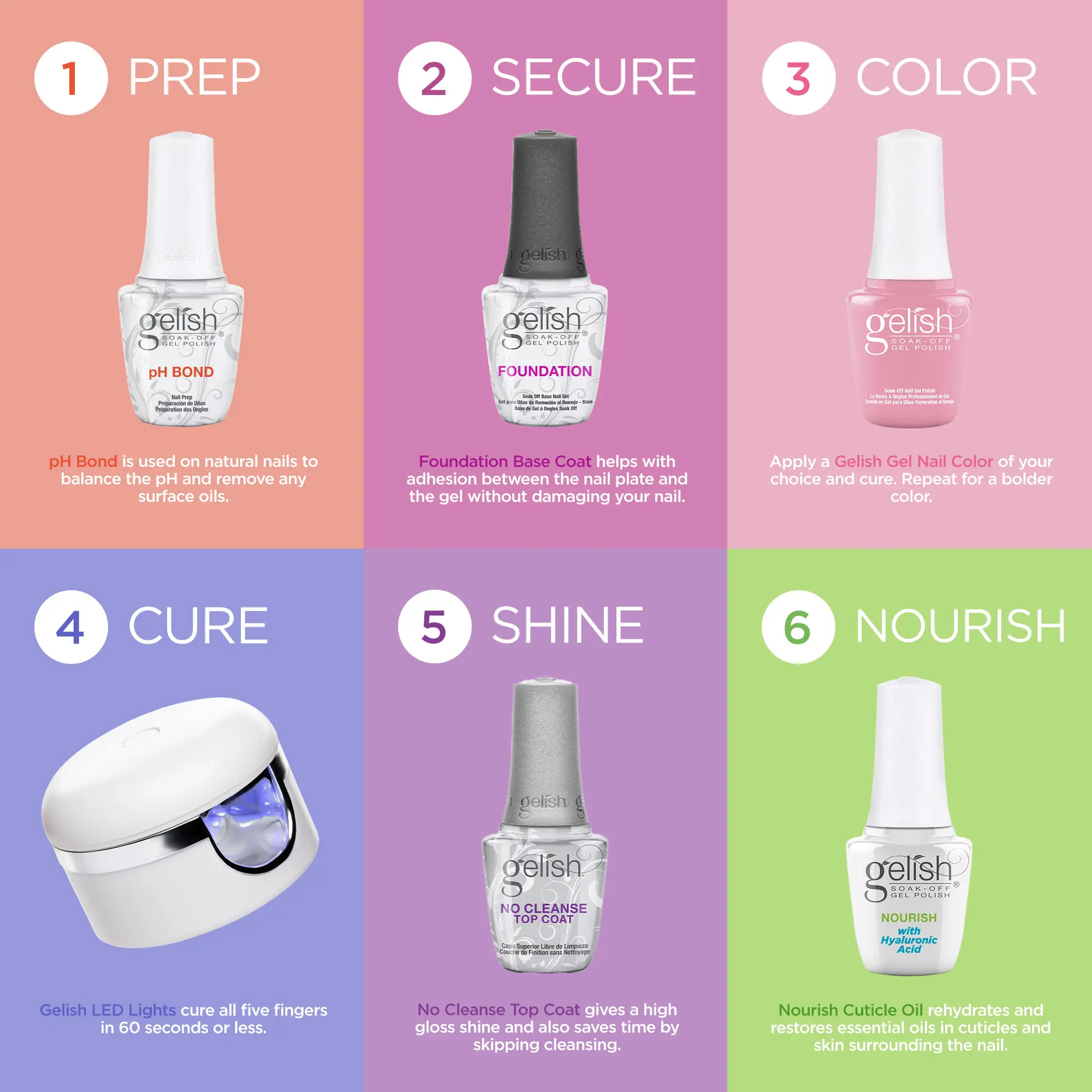 Gelish No Cleanse Top Coat provides a shiny, glossy finish without the need for wiping. It seals in color and offers a smudge-free, durable finish. Save time while giving your manicure a polished look.