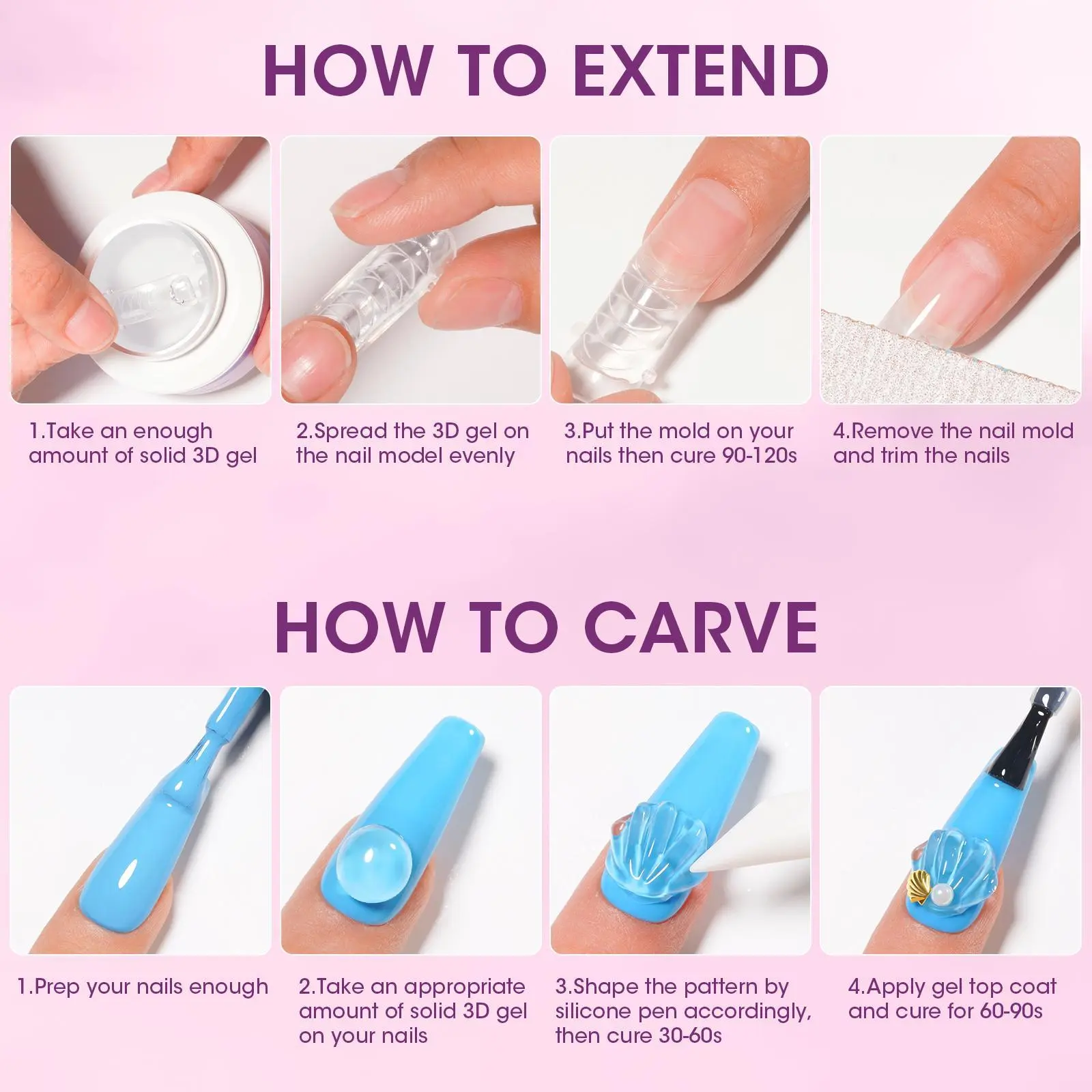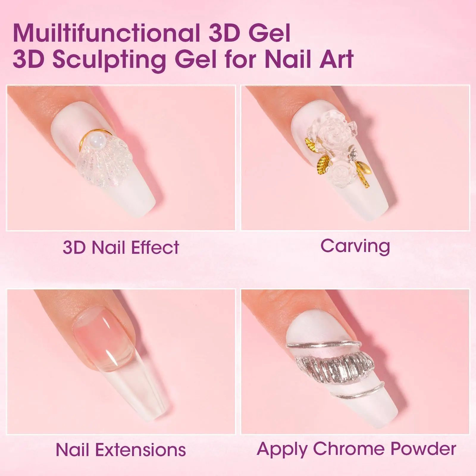 Durable & Safe Formula: Formulated with natural resin and healthy ingredients, this 3D nail sculpting gel is long-lasting, lasting up to 21+ days. Its solid texture ensures durable results while remaining safe for both nails and skin.