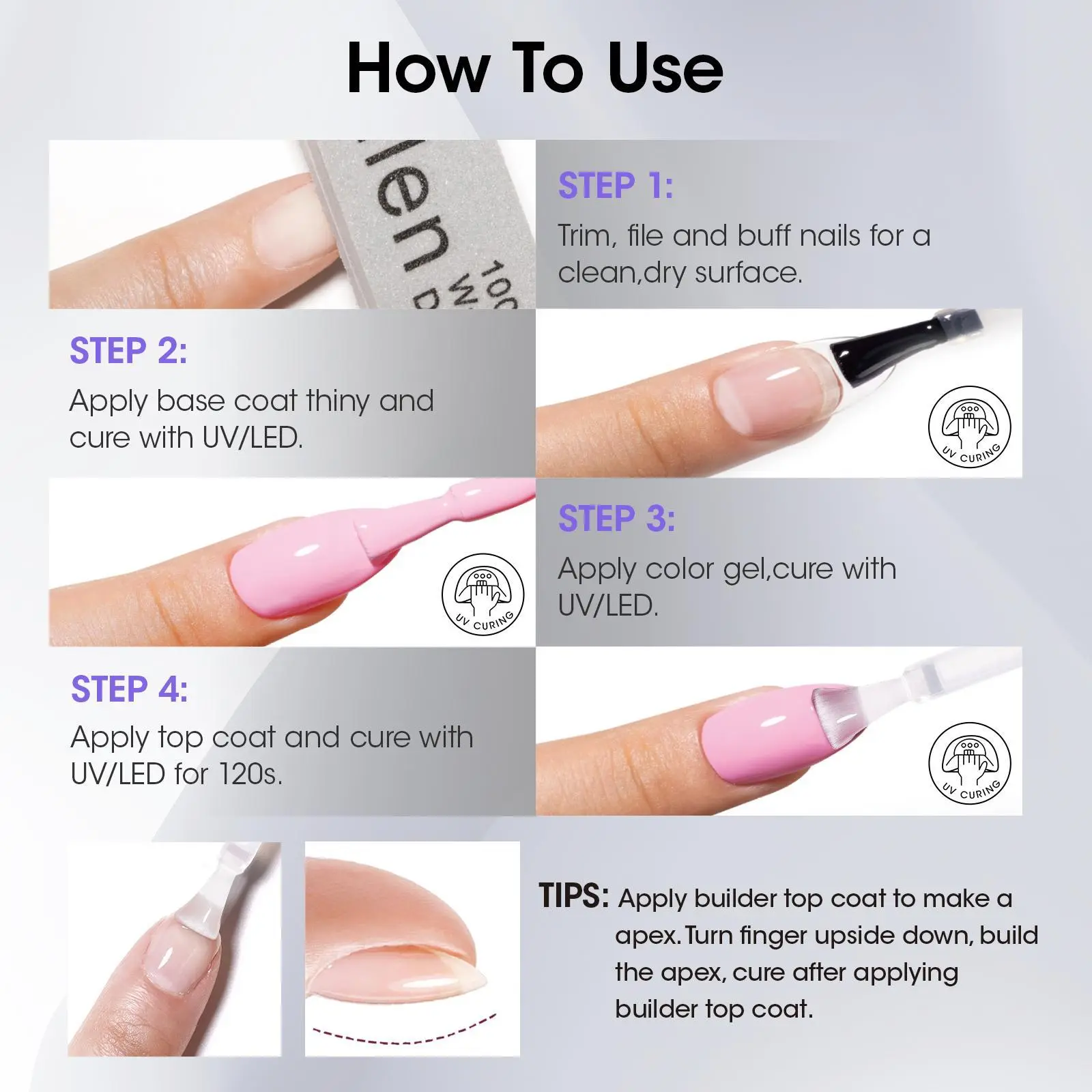 ·Cure under LED/UV lamp for at least 60 seconds.