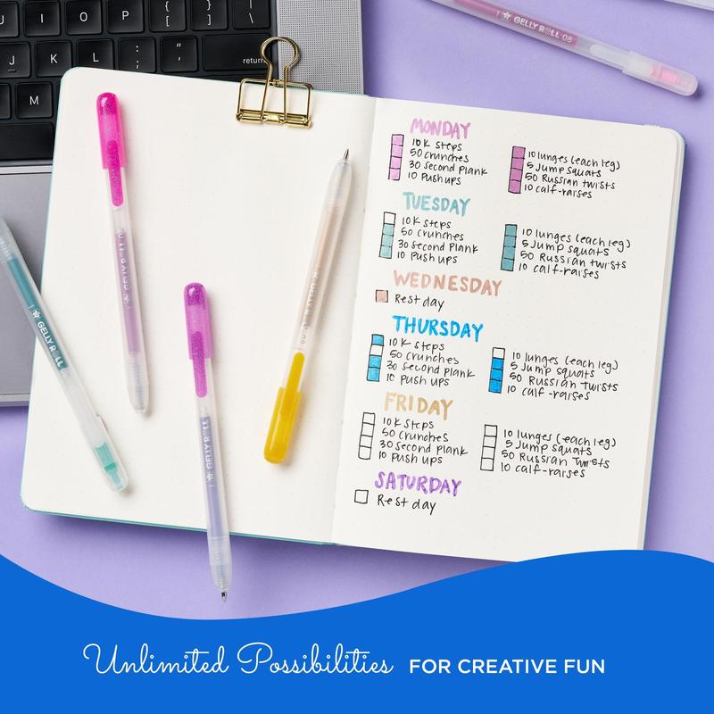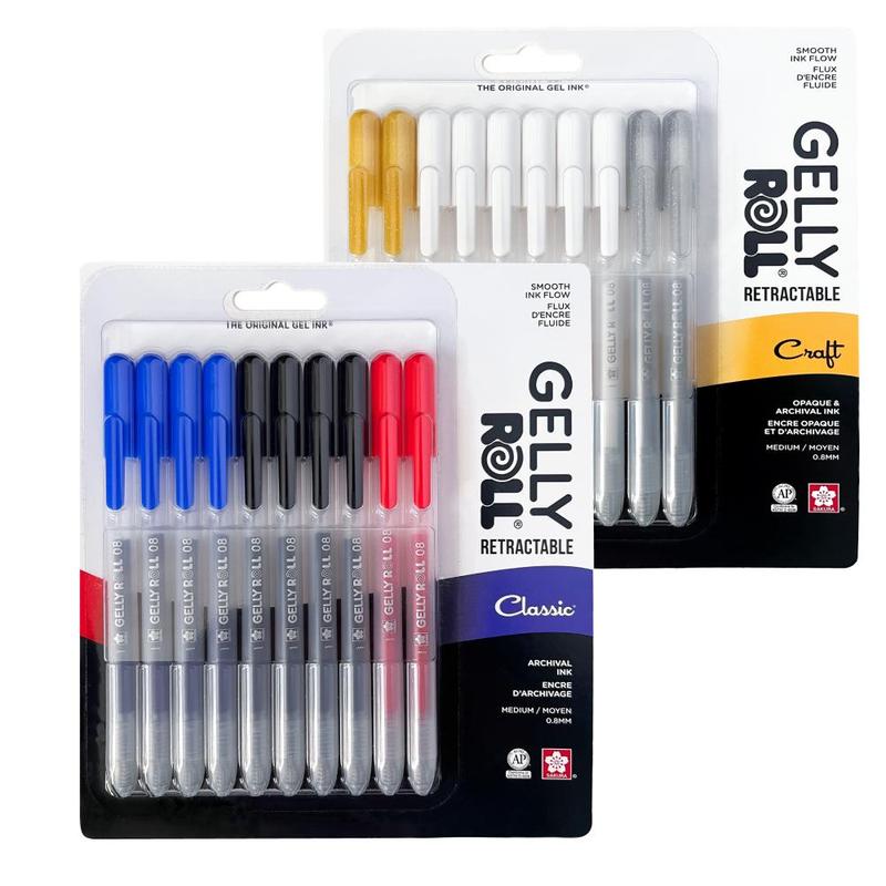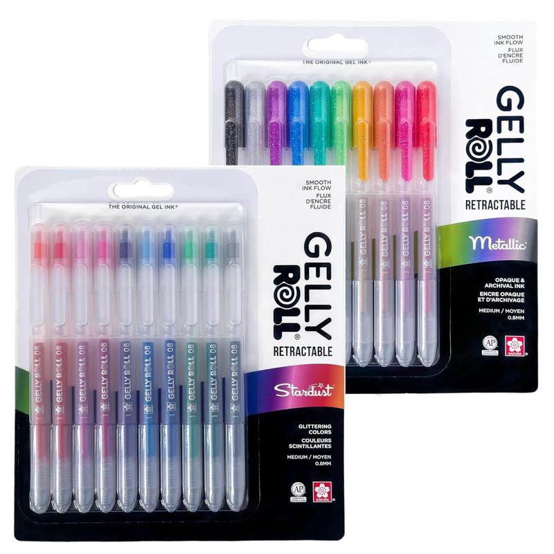 Introducing the Gelly Roll Retractable, from the creators of the original gel ink. Enjoy smooth, vibrant ink in Classic, White, Metallic, and Stardust (Glitter) options, perfect for notes, lists, drawings, and more. The 08 medium tip ensures smooth flow on matte and glossy paper for endless creative possibilities.