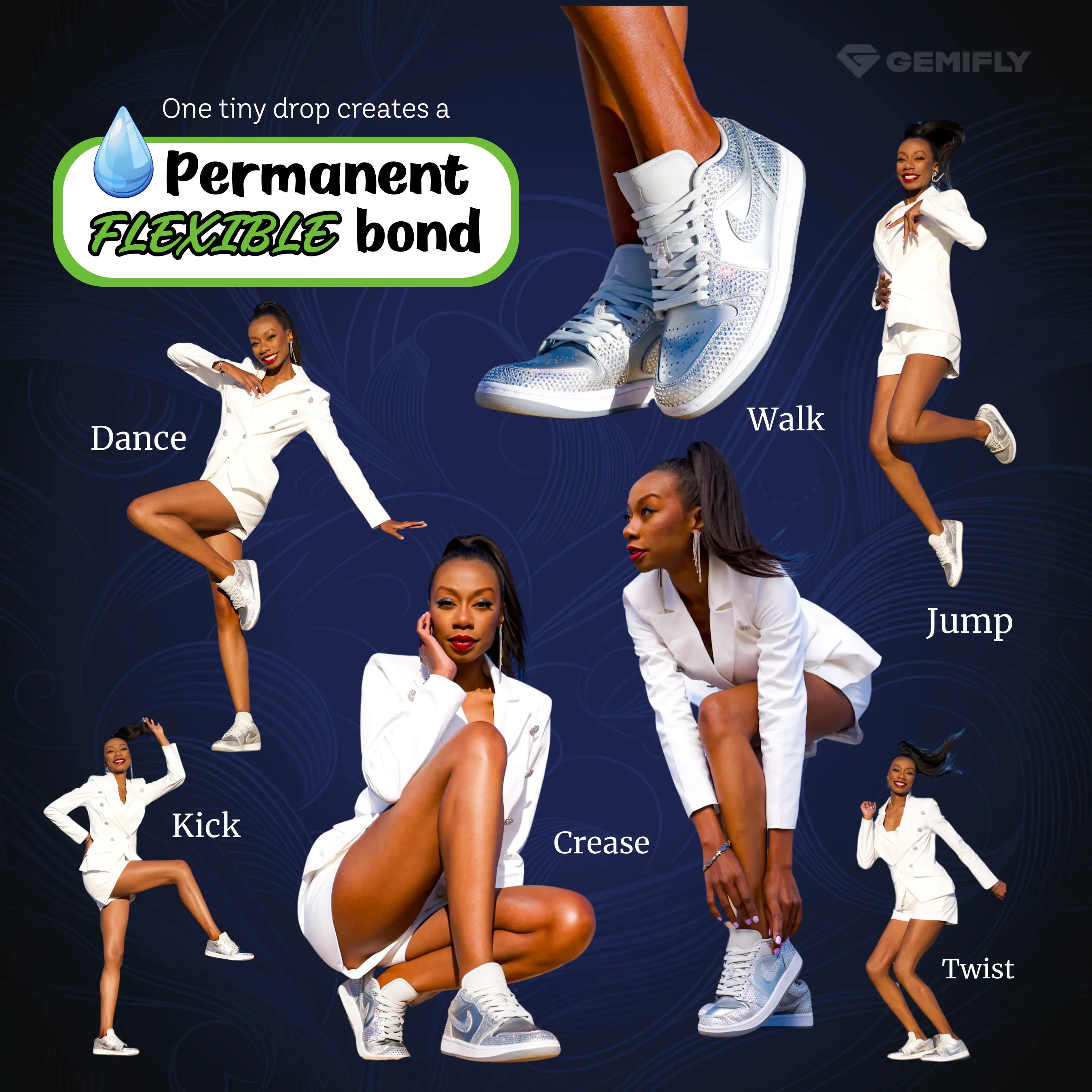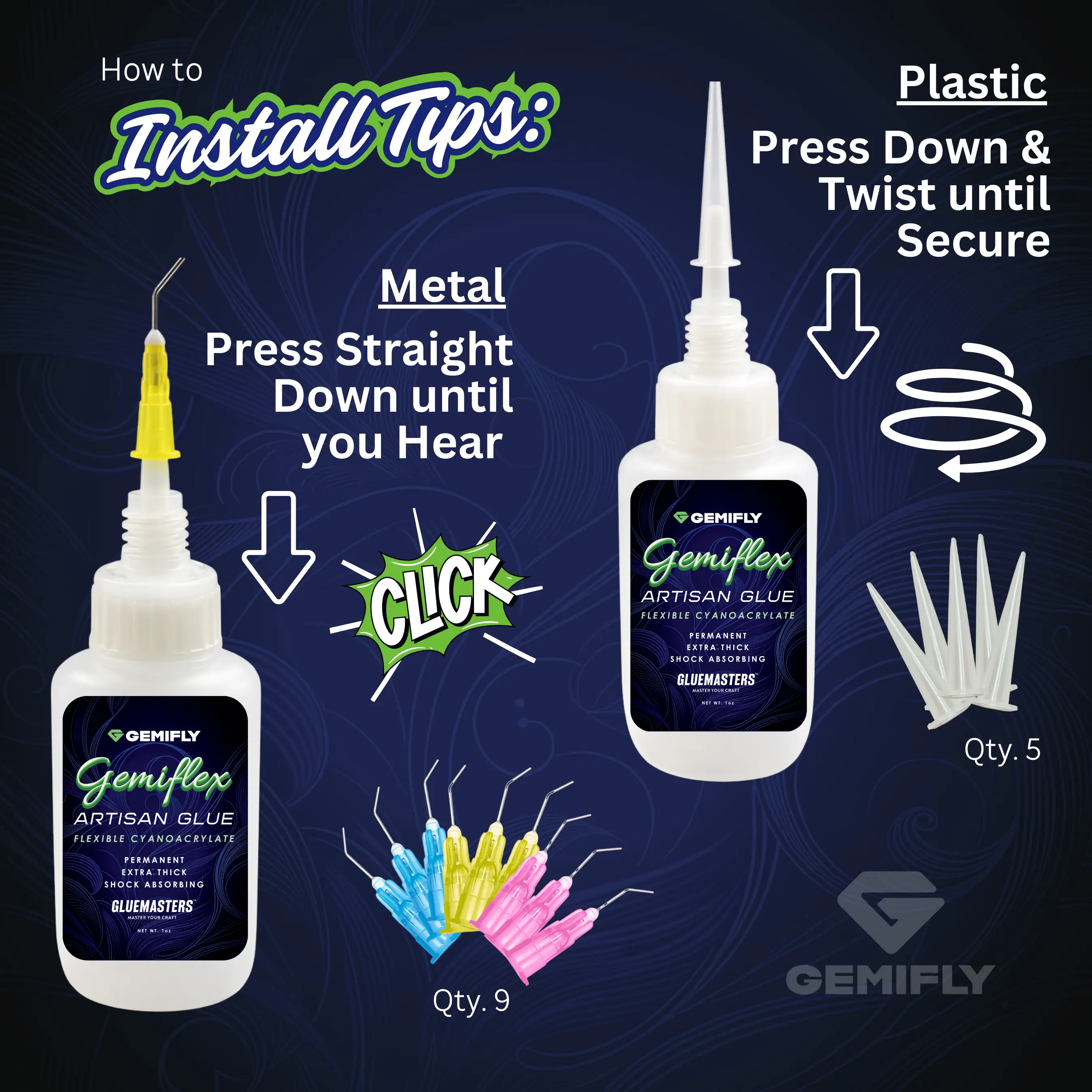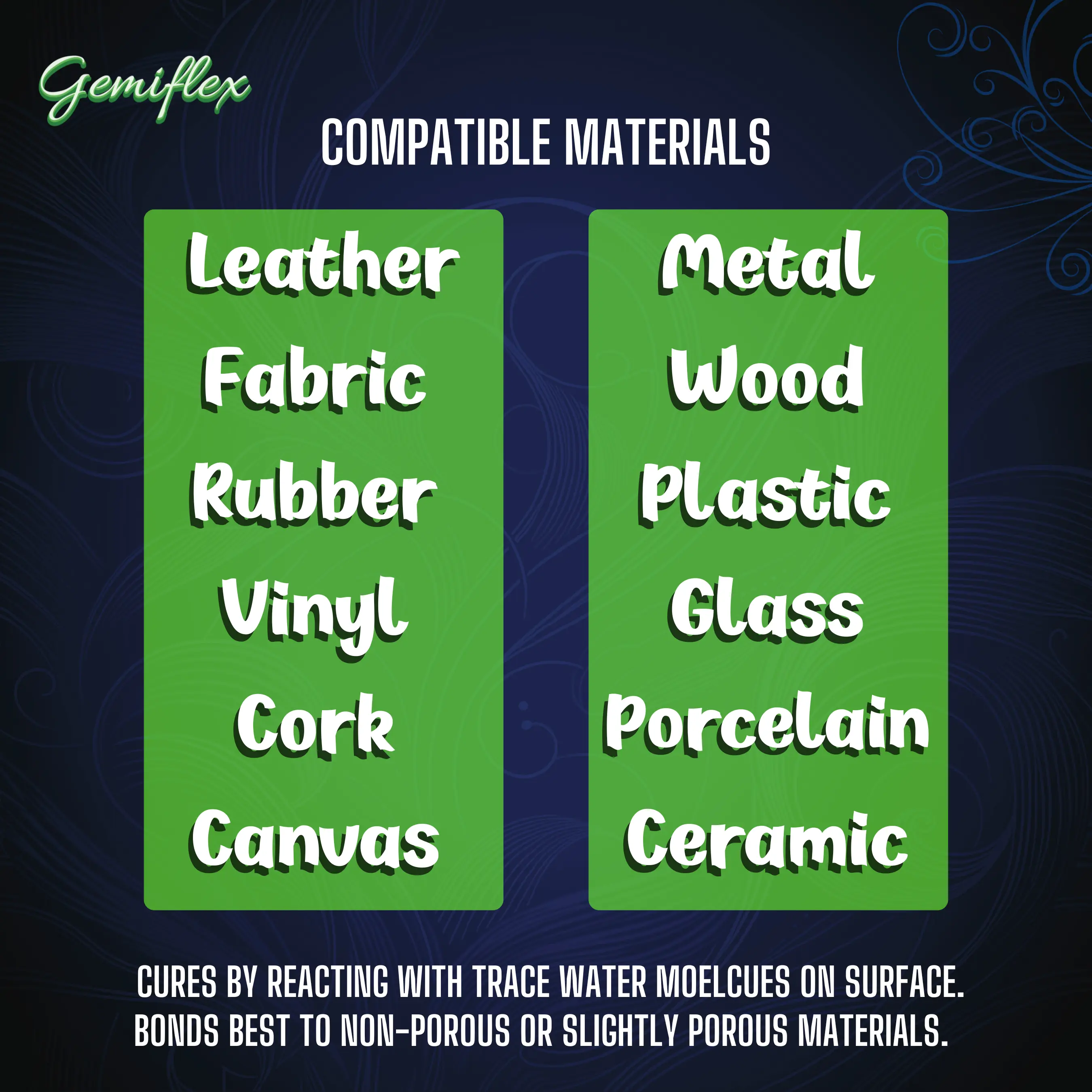 Unlike standard cyanoacrylate, GEMIFLEX™ allows for a better overall kinetic bond by drying softer and "stretchier".