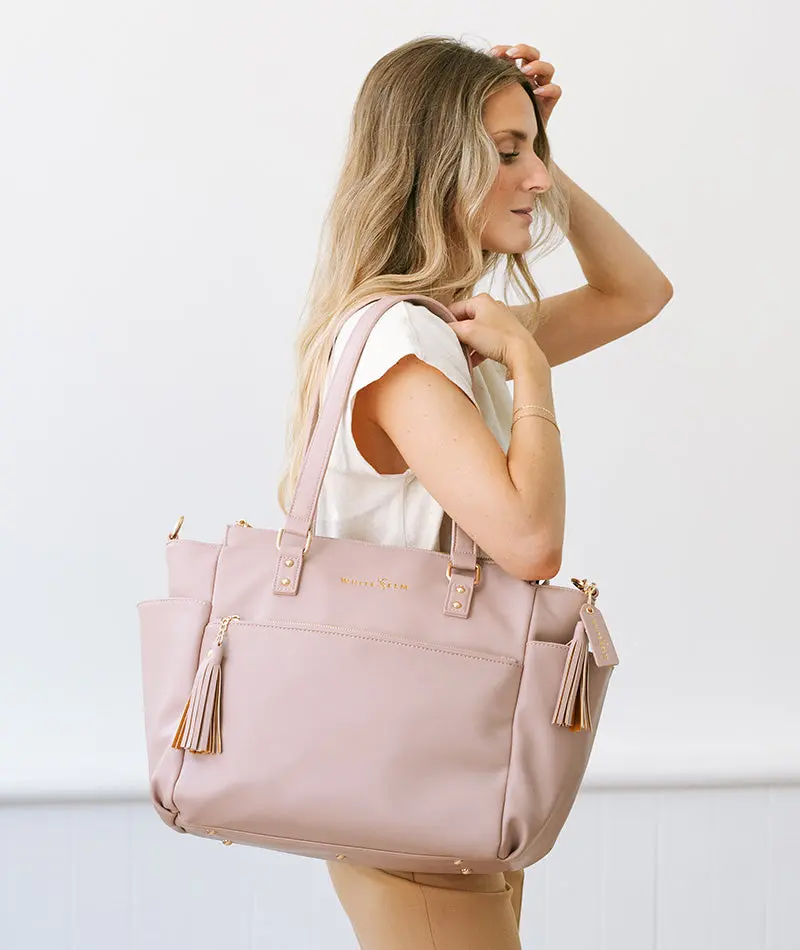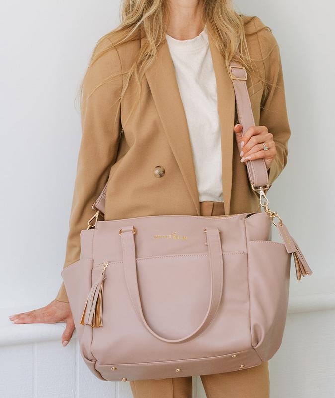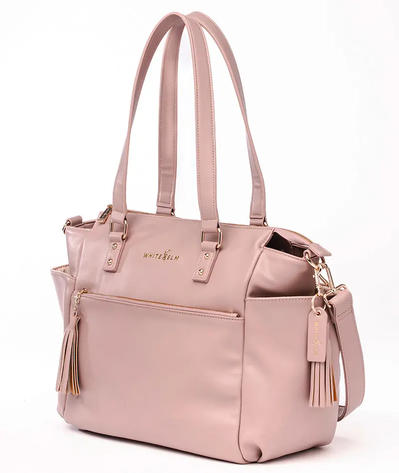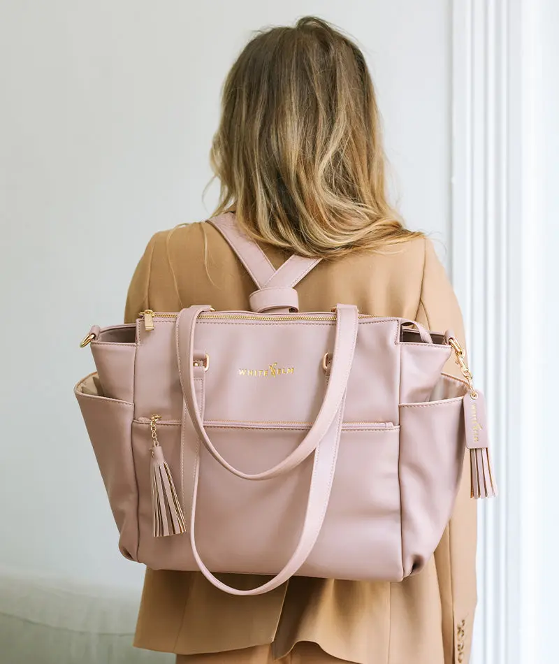 White Elm had me at “we can fit your 40oz Stanley cup with a side handle in our side pocket”. But the soft vegan leather that was soooo supple and the large straps that made carrying it over my shoulder or on my back light work is what really hooked me. I’m now buying random accessories that I don’t need just too match this perfect pink blush. I love this bag!