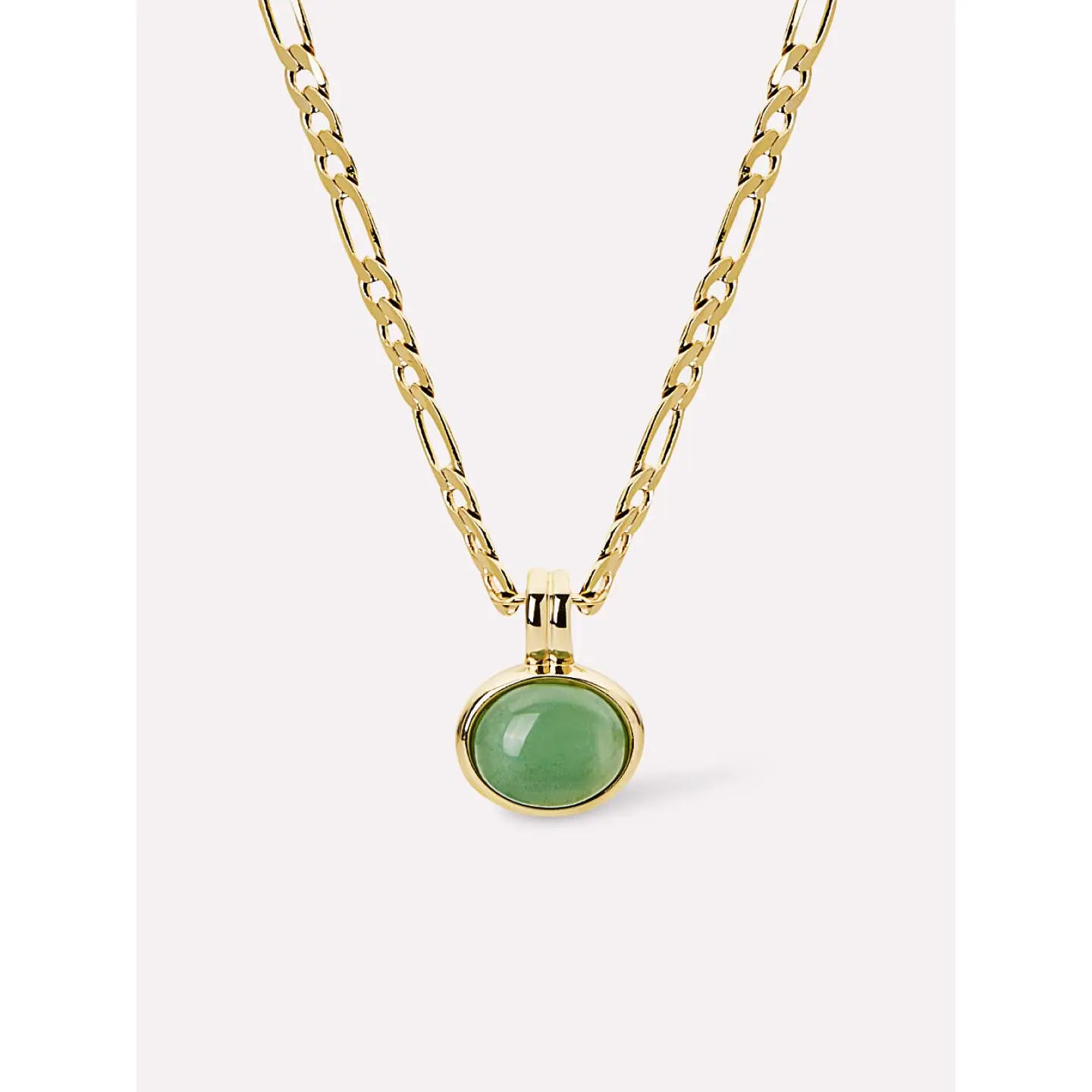 This dainty gemstone necklace with a pop of color from a green Aventurine is our latest gemstone addition. Featuring a delicate figaro chain dipped in 14K gold and a green Aventurine gem in a bezel setting, this elegant gemstone necklace will be your new favorite wear-anywhere accessory. Pair it with the matching gemstone hoop earrings for a cohesive look. Due to the unique nature of precious stones, exact colors and patterns may vary slightly from the picture shown.