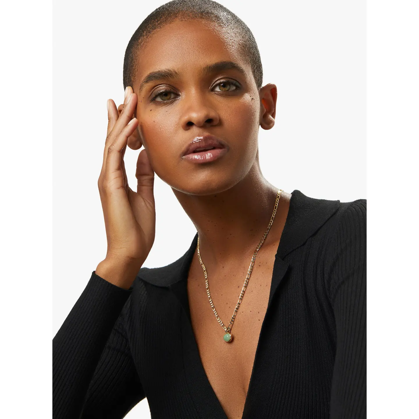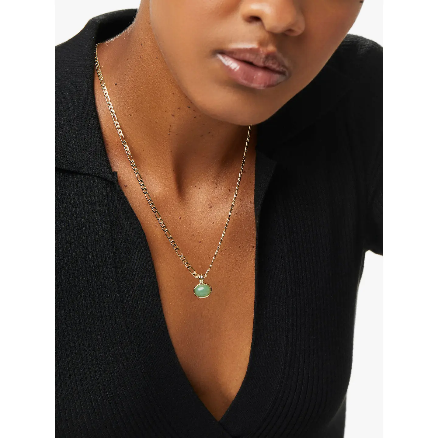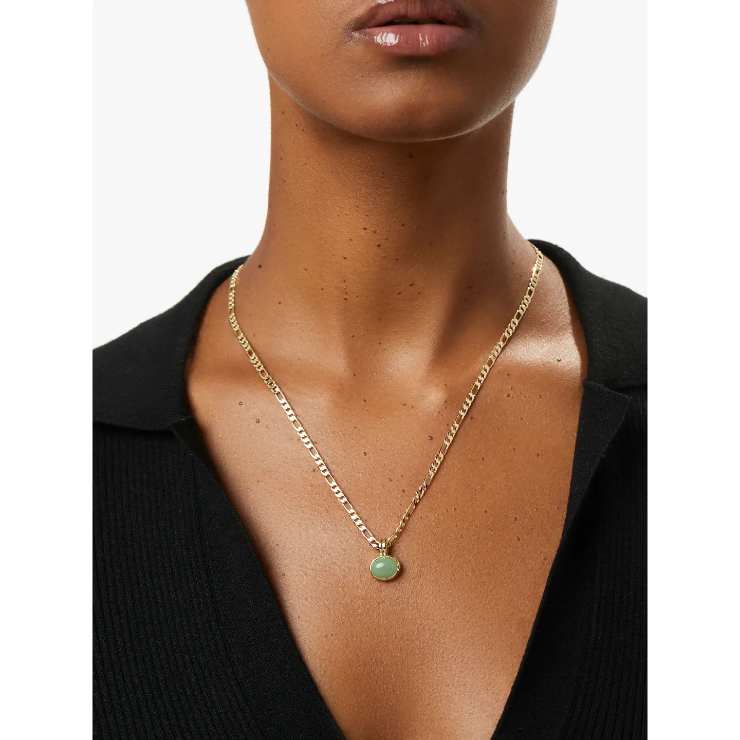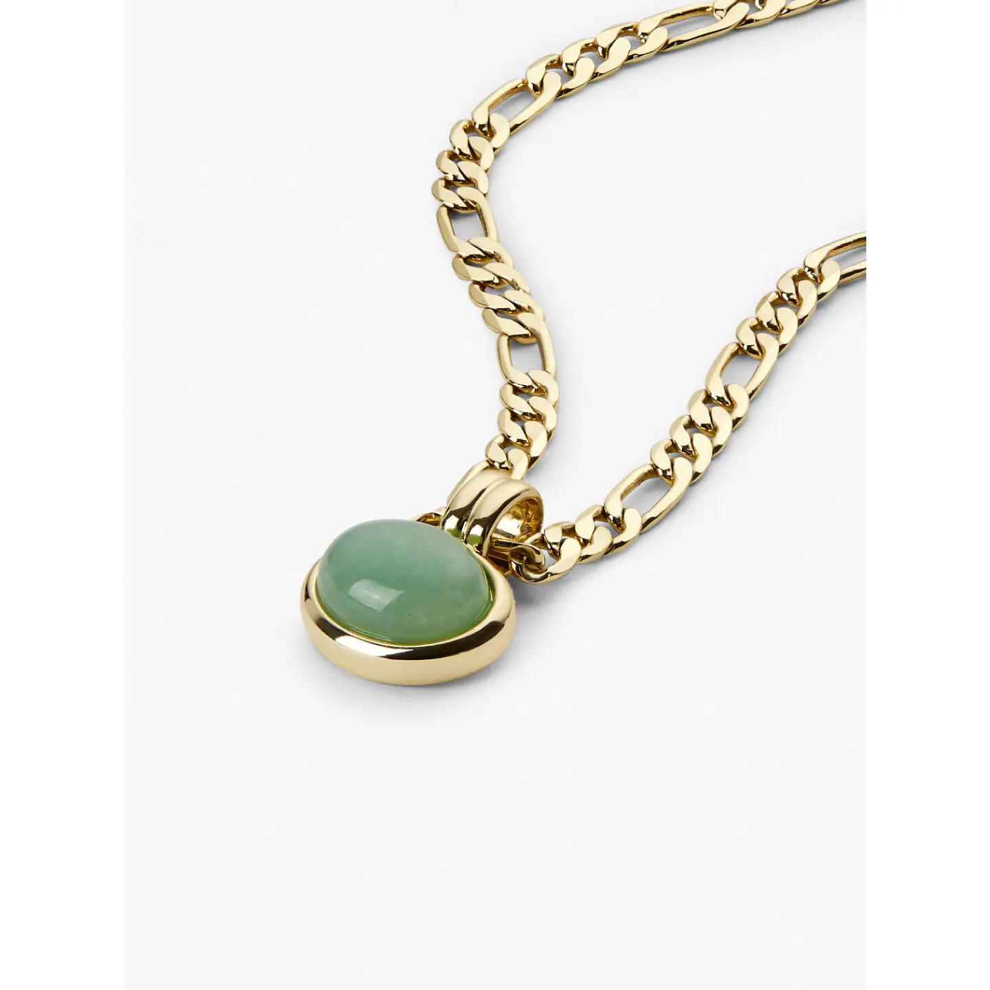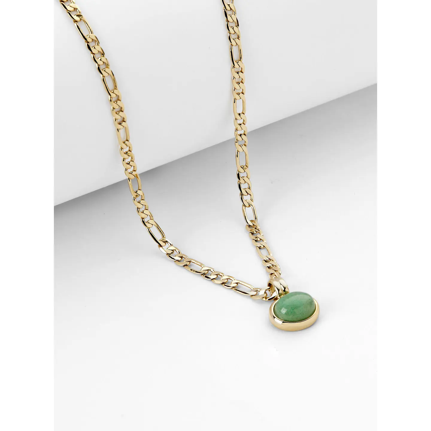 • Gold-dipped chain necklace with a modern link pattern • Features a luscious green Aventurine gem in a bezel setting