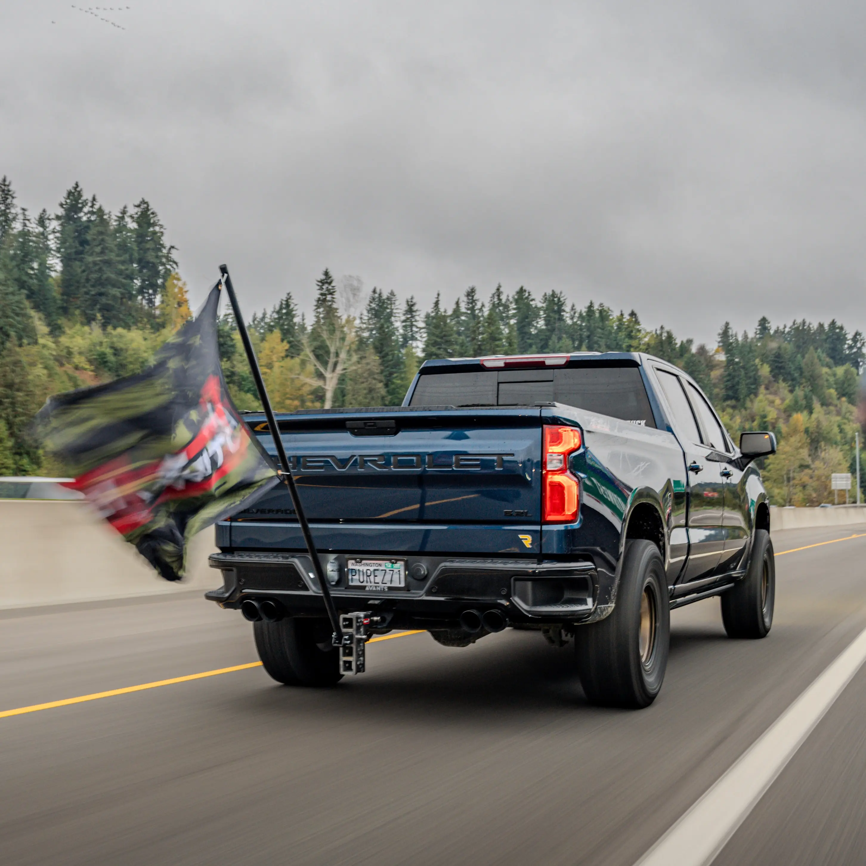 The GEN-Y Flag Pole can be inserted directly into the vehicle receiver or a GEN-Y Hitch (in the stacked tube side). You can angle the flag pole to three different angles and attach a 3' x 5' flag to it. It is lightweight, heavy-duty and powder coated with a durable black, matte color.