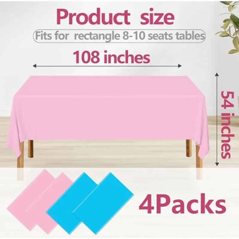 5. 4 Pack Gender Reveal Table Cloths,Plastic Pink and Blue Table Cloth Disposable Tablecloths Rectangle Table Cover for Party Wedding Baby Gender Reveal Decorations 54×108 Inch