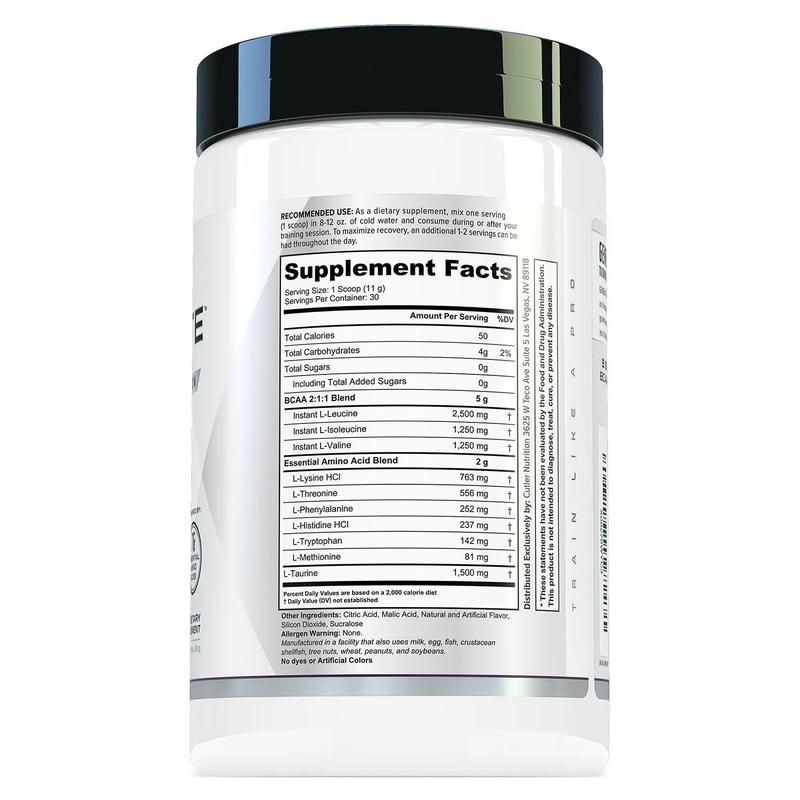 Cutler Nutrition's Generate BCAA and EAA Amino Acid Recovery Supplement is perfect for those who are looking for a high-quality intra workout solution. It contains an essential amino acid blend (L-Lysine, L-Threonine, L-Phenylalanine,L-Histidine,L-Tryptophan,L-Methionin) along with the powerful combination of BCAAs. These ingredients work together to provide you with enhanced performance during workouts while also promoting faster recovery post-workout.