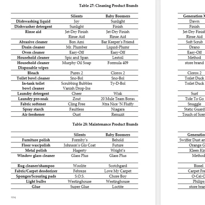 What kind of restaurants do Baby Boomers eat at and who do they eat with? What jeans do Millennials wear and how much are they willing to pay for them? What brands and kinds of makeup do Generation Z use?