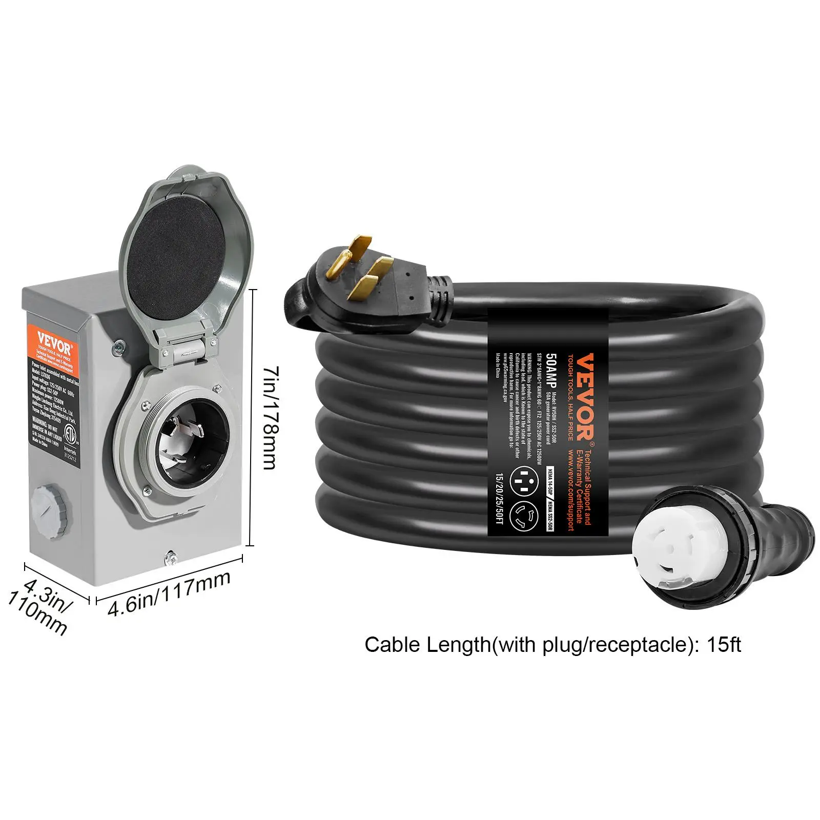 • ETL Certified Reliability: Ensure ultimate security and durability with our ETL-certified generator cord and power inlet box, designed to withstand tough conditions. This 15-foot heavy-duty generator cord is crafted from pure copper wiring and encased in flame-retardant PVC that resists heat and UV damage. It protects against rain, wind, snow, soil, and rocks, even when used outdoors for long periods.